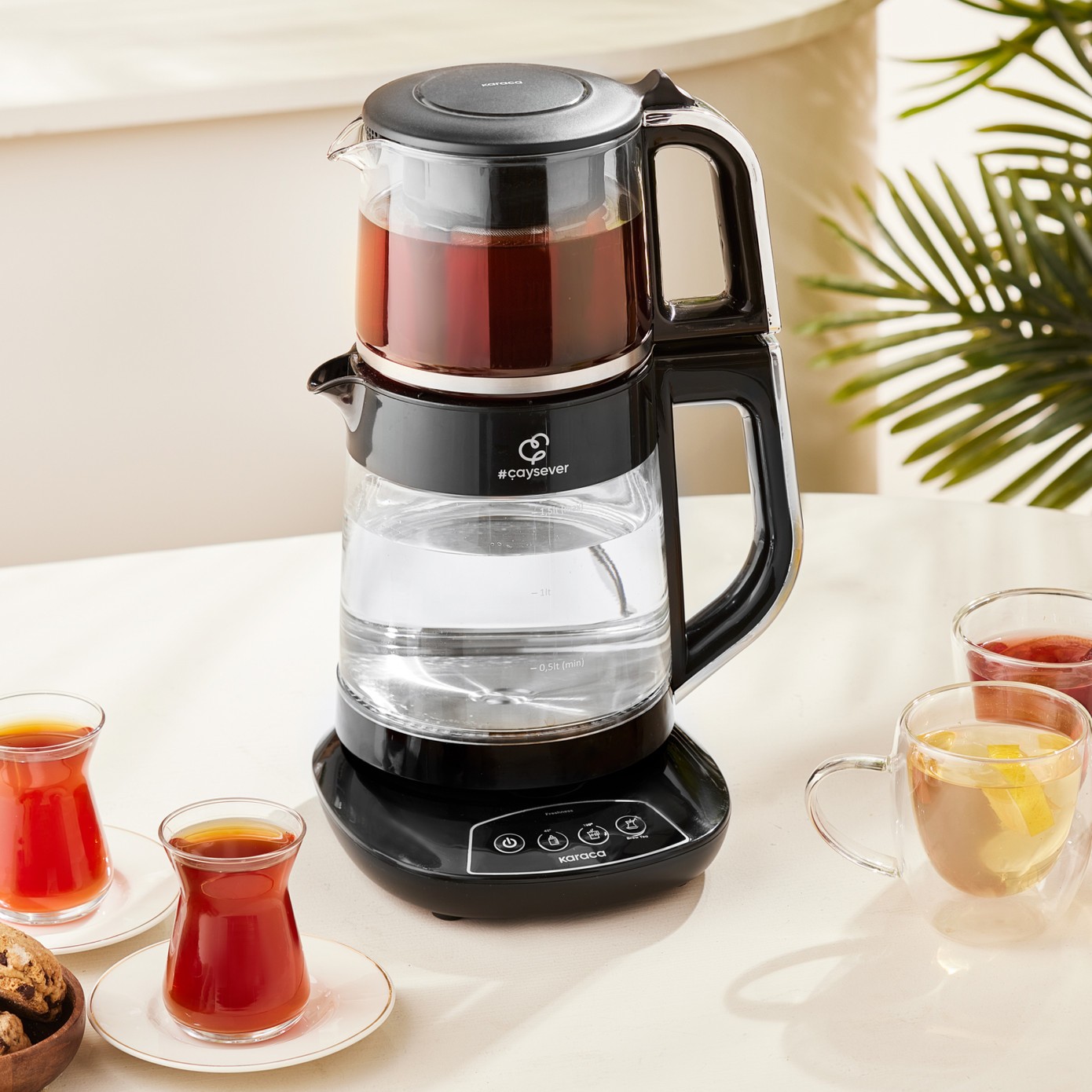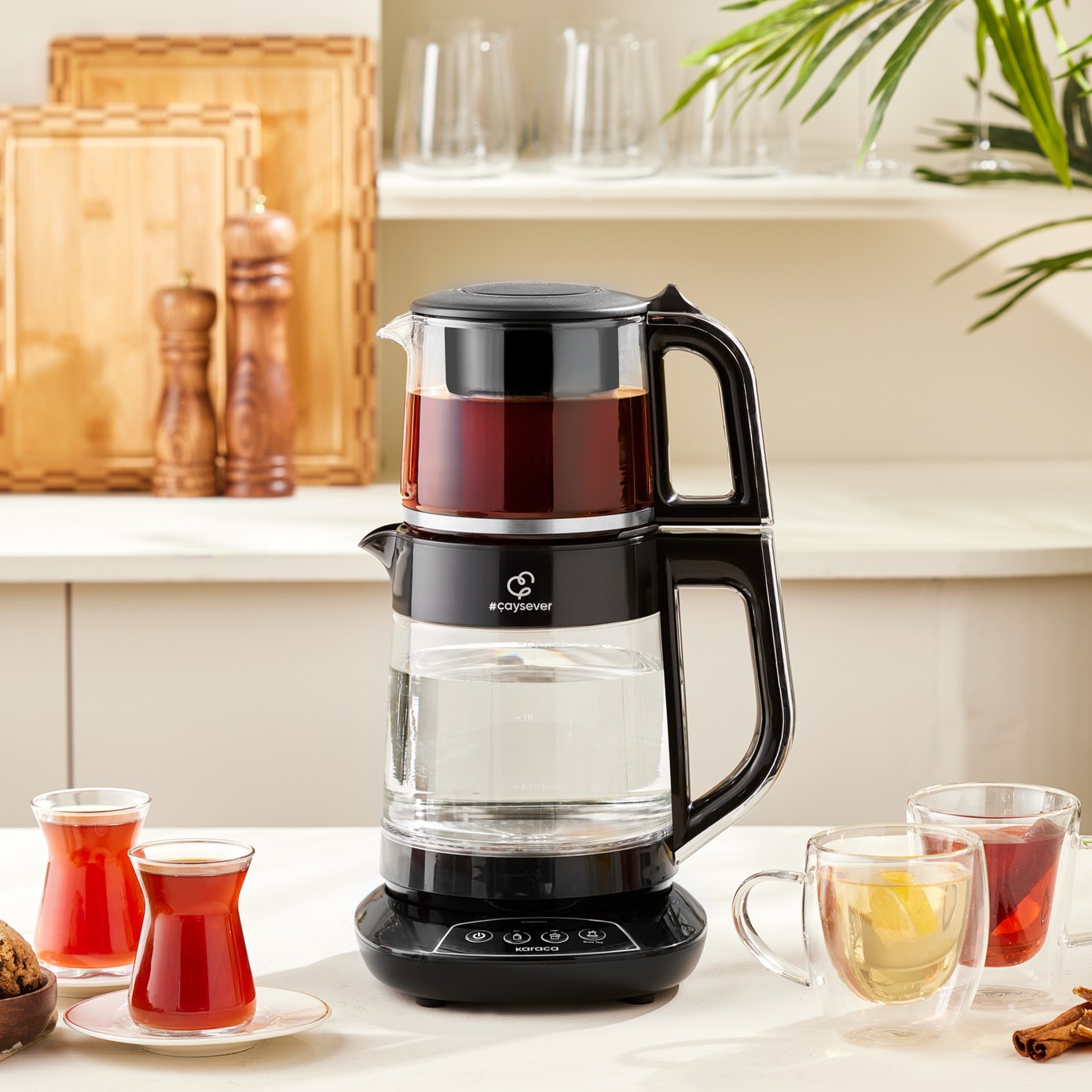 Karaca Çaysever 3 In 1 Konuşan Cam Çay Makinesi Su Isıtıcı ve Mama Suyu Hazırlama 1700W Black