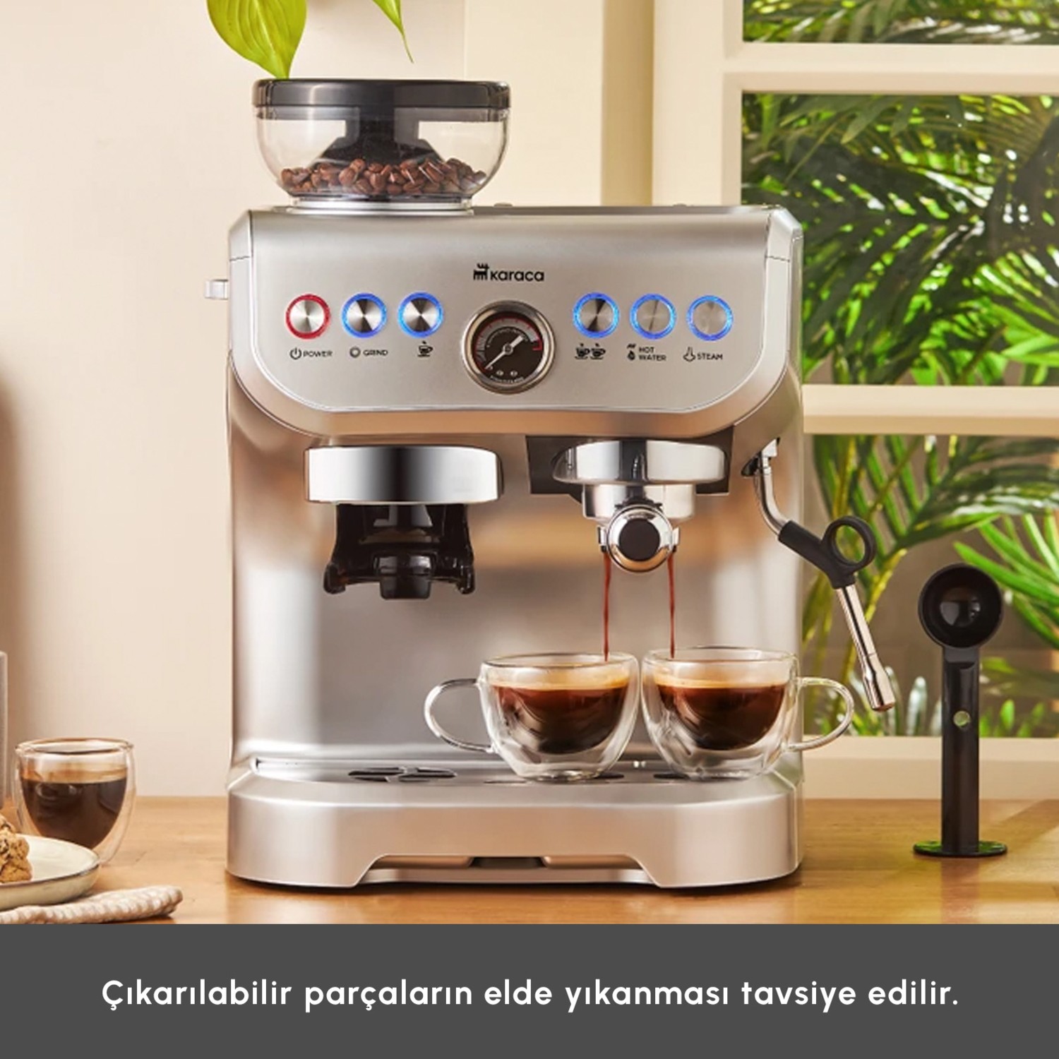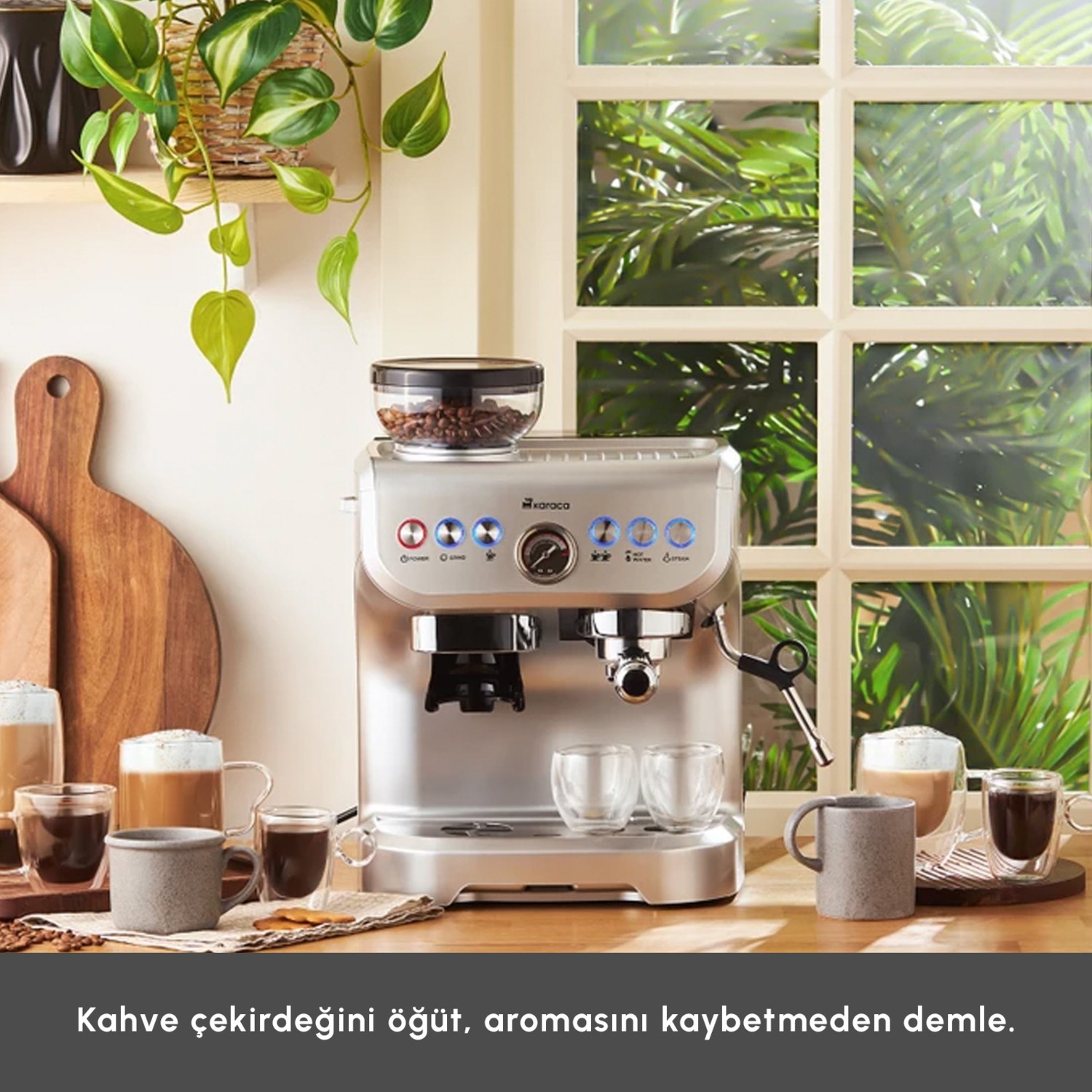 Karaca Coffee Art Barista Kahve Öğütücülü, Süt Köpürtücülü, 15 Bar Basınçlı Espresso, Latte, Cappuccino, Americano Makinesi 2 Lt