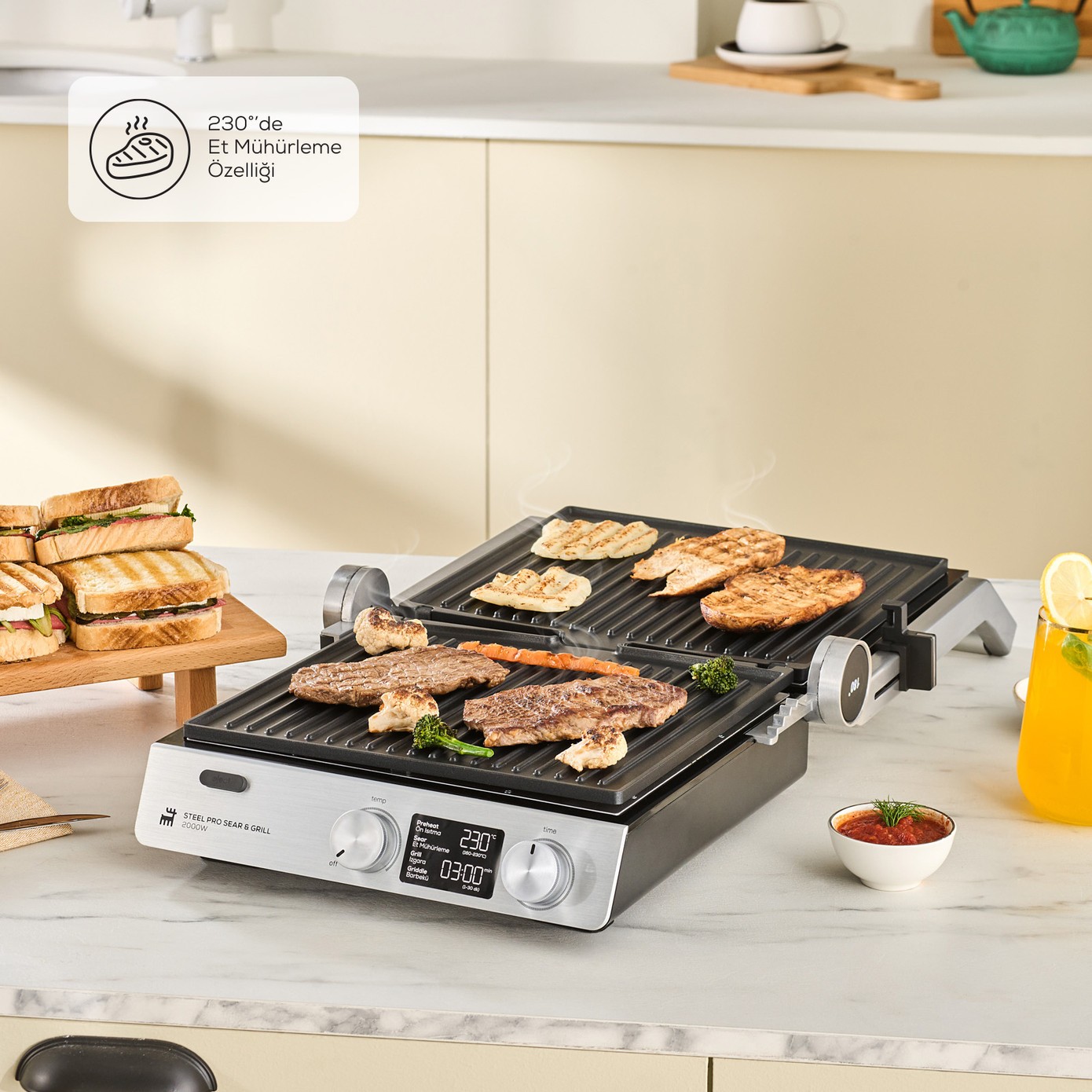 Karaca Compact Steel Pro Sear And Grill Inox 2007 Izgara ve Tost Makinesi
