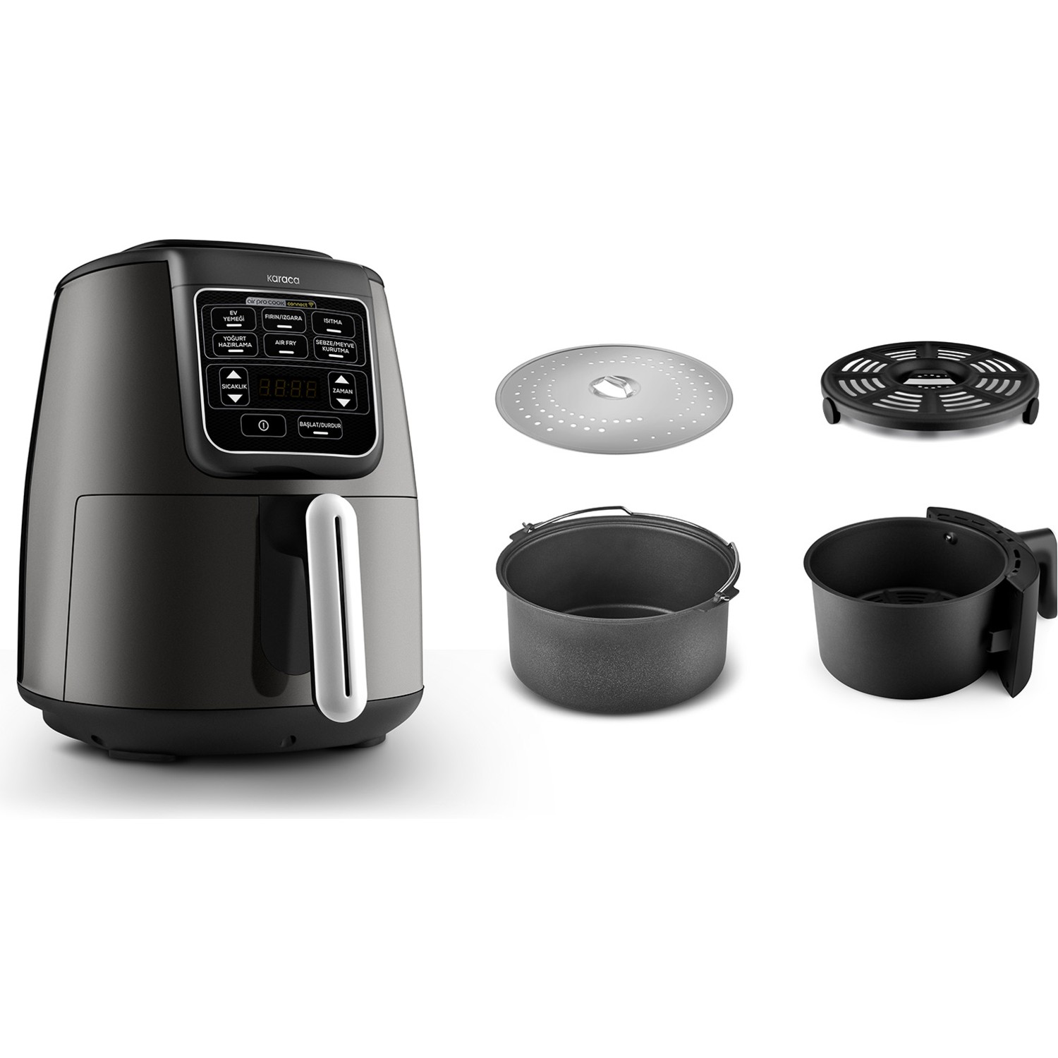 Karaca Connect Air Pro Cook Xl 2 In 1 Uzaktan Erişimli Airfryer Shadow Grey 4 Kişilik