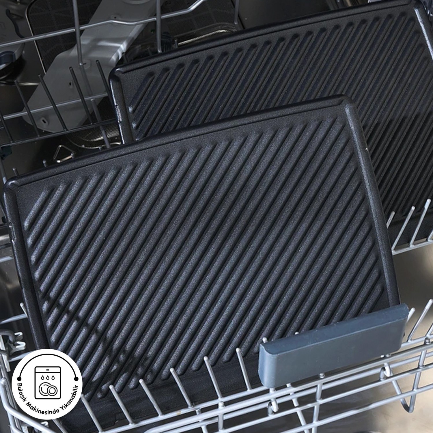 Ürünün ızgara ve tost fonksiyonları bulunmaktadır, böylece hem etlerinizi hem de tostlarınızı kolayca hazırlayabilirsiniz. Ayrıca, ısı ayar düğmesi sayesinde istediğiniz pişirme derecesini kolayca ayarlayabilirsiniz. Yapışmaz yüzeyi sayesinde temizliği de oldukça kolaydır.