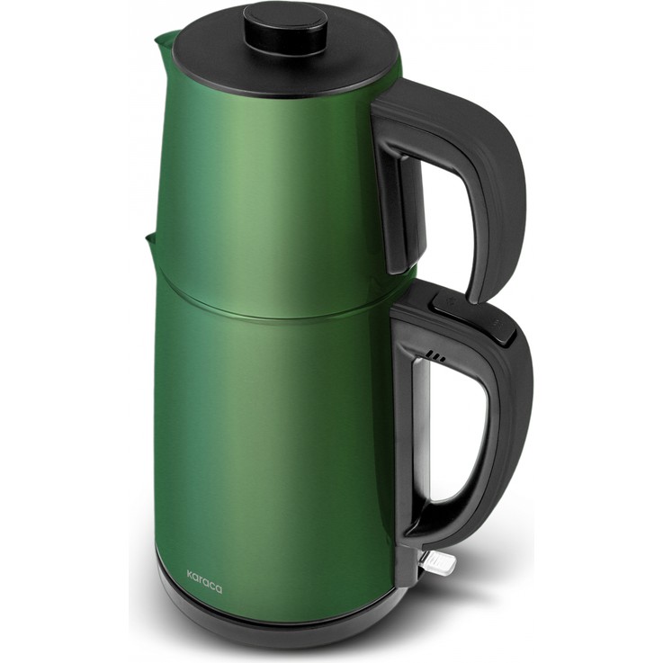 Karaca Gastro Dem 2 In 1 Çelik Inox Çay Makinesi ve Su Isıtıcısı Emerald Green, hem çay demleme hem de su ısıtma işlemlerini tek bir cihazda birleştiren pratik bir üründür. Paslanmaz çelik malzemeden üretilmiş olan bu çay makinesi ve su ısıtıcısı, şık ve dayanıklı bir tasarıma sahiptir.