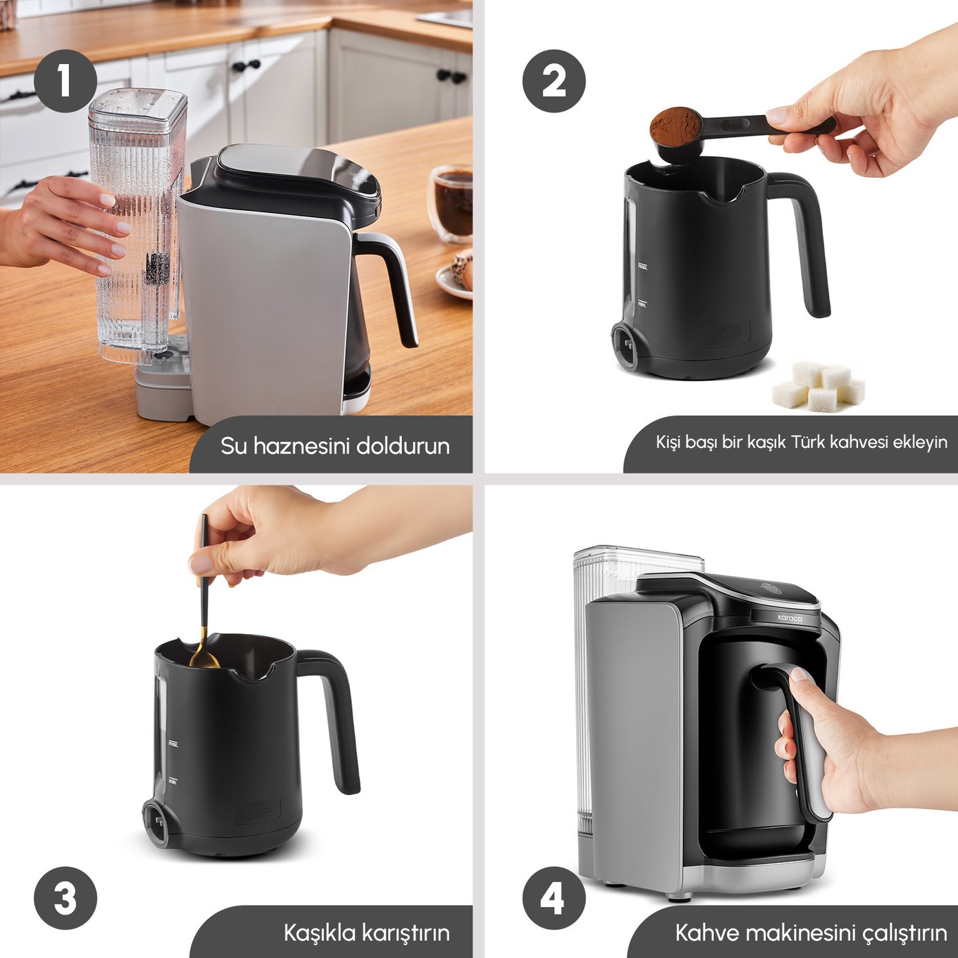 Karaca Hatır Otomatik Su Alma Hazneli Türk Kahve Makinesi Cool Gray için 2 değerlendirme