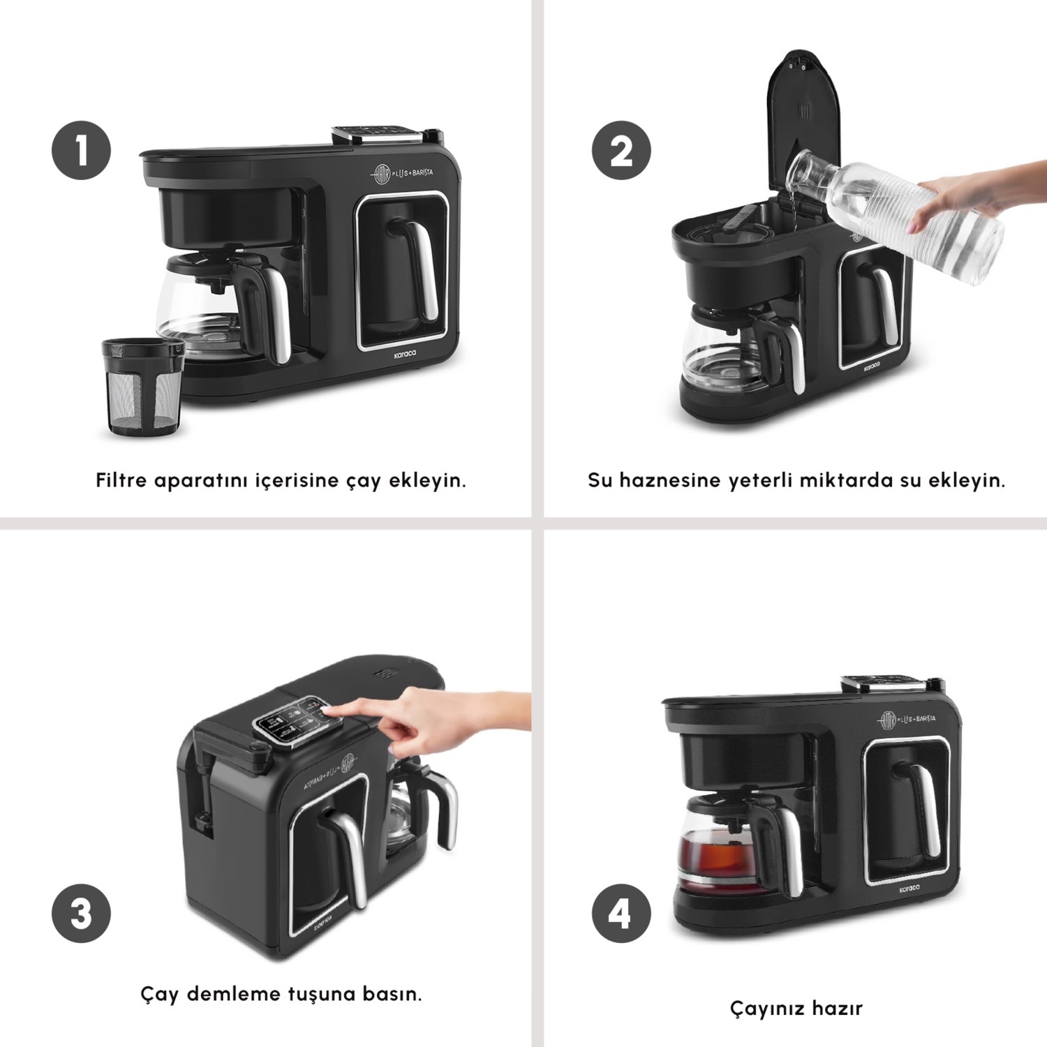 Karaca Hatır Plus Barista 6 In 1 Latte Cappucino ve Közde Türk Kahvesi Makinesi Black Silver için 4 değerlendirme