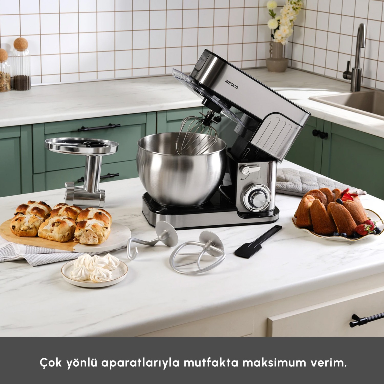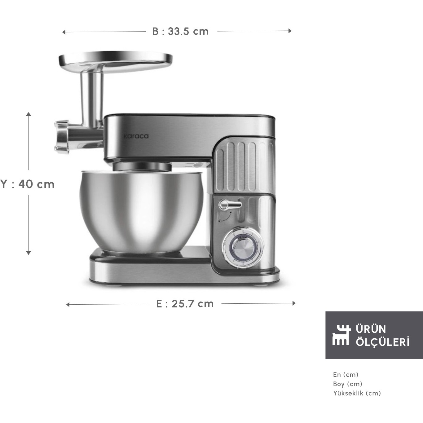Karaca Multichef Stand Mikser Antrasit Mutfak Şefi 1900W 5,5 Lt (Kıyma Çekme /Sucuk-Sosis/İçli Köfte Aparatlı)