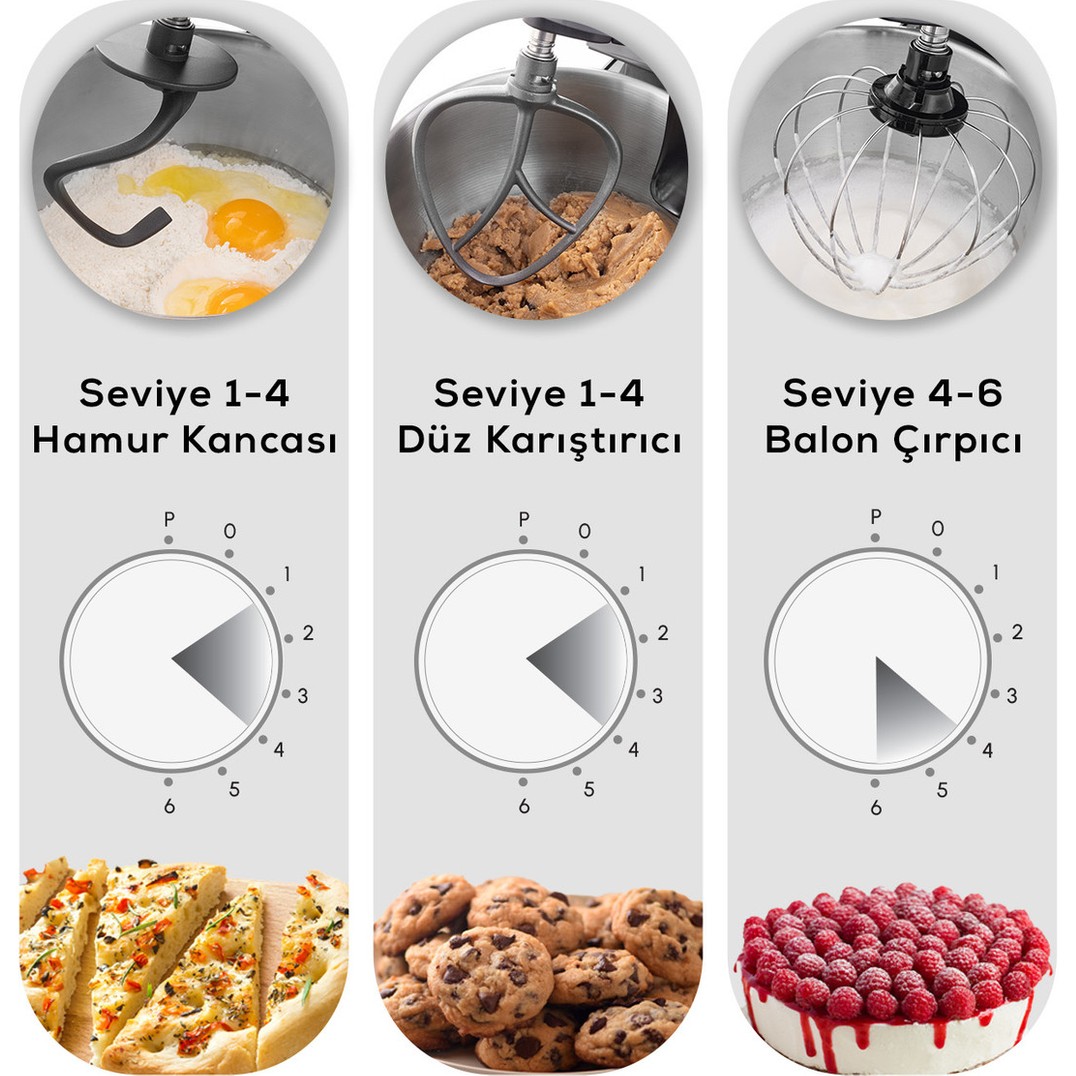 Icotech SM60 6 Lt Hamur Yoğurma Kıyma Çekme Katı Meyve Sıkma Profesyonel Stand Mikser Mutfak Şefi