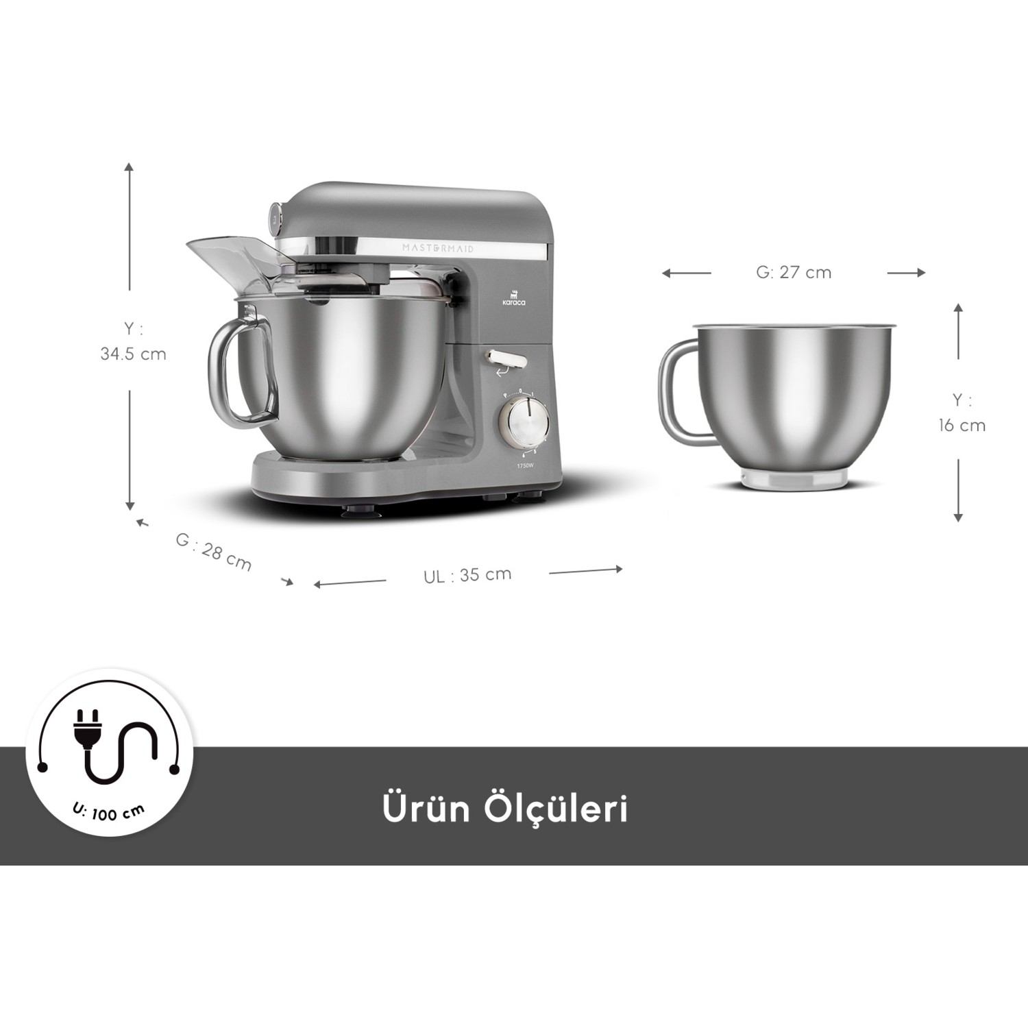 Karaca Mastermaid Chef Pro Çift Kollu Stand Mikser Galaxy Grey 1750 W