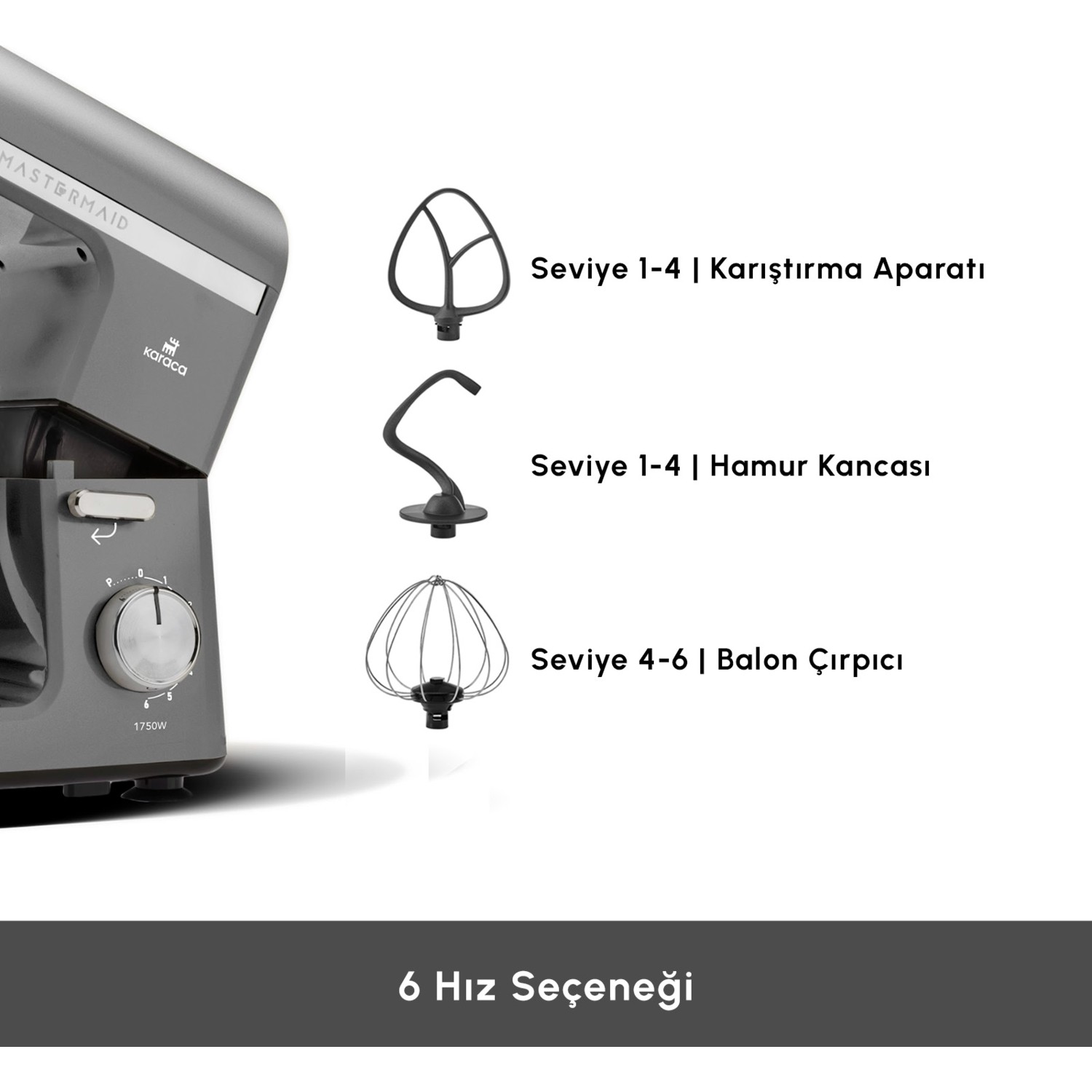 Karaca Mastermaid Chef Pro Çift Kollu Stand Mikser Galaxy Grey 1750 W için 2 değerlendirme