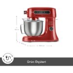 Emsan Bella Gusto Kırmızı Stand Mikser Mutfak Şefi 1300W 5 Lt