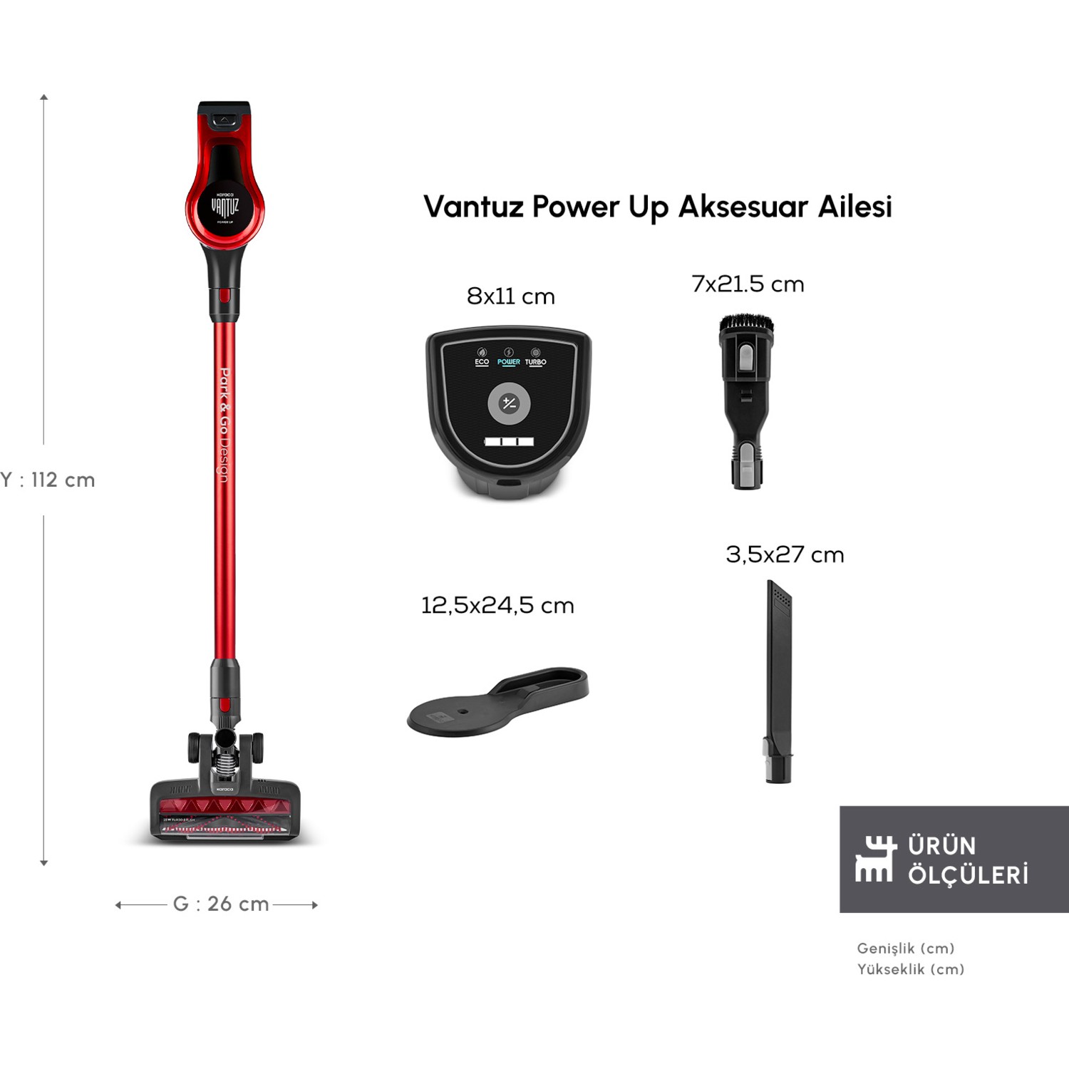 Karaca Vantuz Power Up Dikey Süpürge Imperial Red
