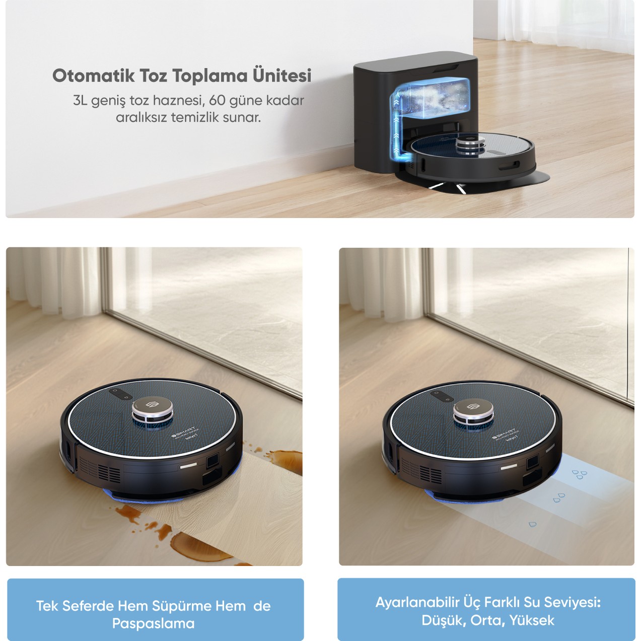 Katya T Akıllı Robot Süpürge Otomatik Toz Boşaltma ve Mop Özellikli