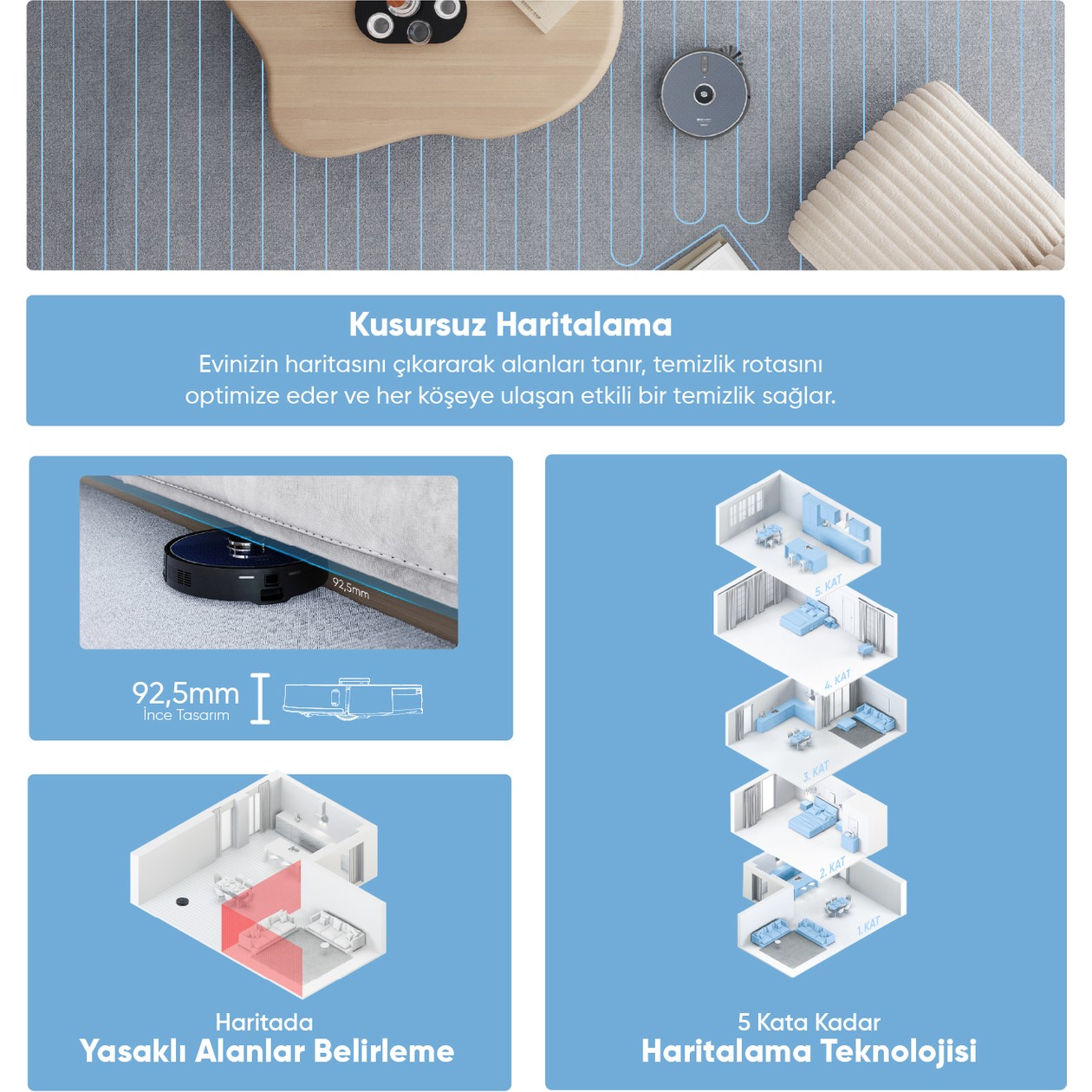 Ürününun çekim gücü her özelliği çok güzel.. sadece haritalamayi unutuyor tekrar haritalama istiyor .başkalarına sordum tabi onların başka markalar . Onlarda öyle bir şey olmuyormuş . Anlamadım. 2 defa kullansam 3. Ye tekrar haritalama istiyor . Bu yüzden 1 yıldız kırdım. Fırçası her yerde kalıyordu müşteri hizmetltlerine danıştım iyice bastirmami söylediler . Meğerse ben tam takmıyormusum. Fırçası çıkan arkadaşlar biraz daha bastırın tık diye oturduğunu anlayacağınız bir ses gelecek ,ondan sonra daha çıkmıyor .170 m kare evde kullanıyorum . Tek seferde şarjı yetmoyor. Yarısını bitiriyor. Sonra şarj olup tekrar devam ediyor. 2. Sinde bitiriyor. Tabi haritalama istemezse baştan . İsterse 2. Şarjda doluyor 2 oda kalıyor onları da süpürüyor öyle bitiyor. Silmesini henüz kullanmadım . Kullanınca yorumumu guncellerim İNŞAALLAH ☺️