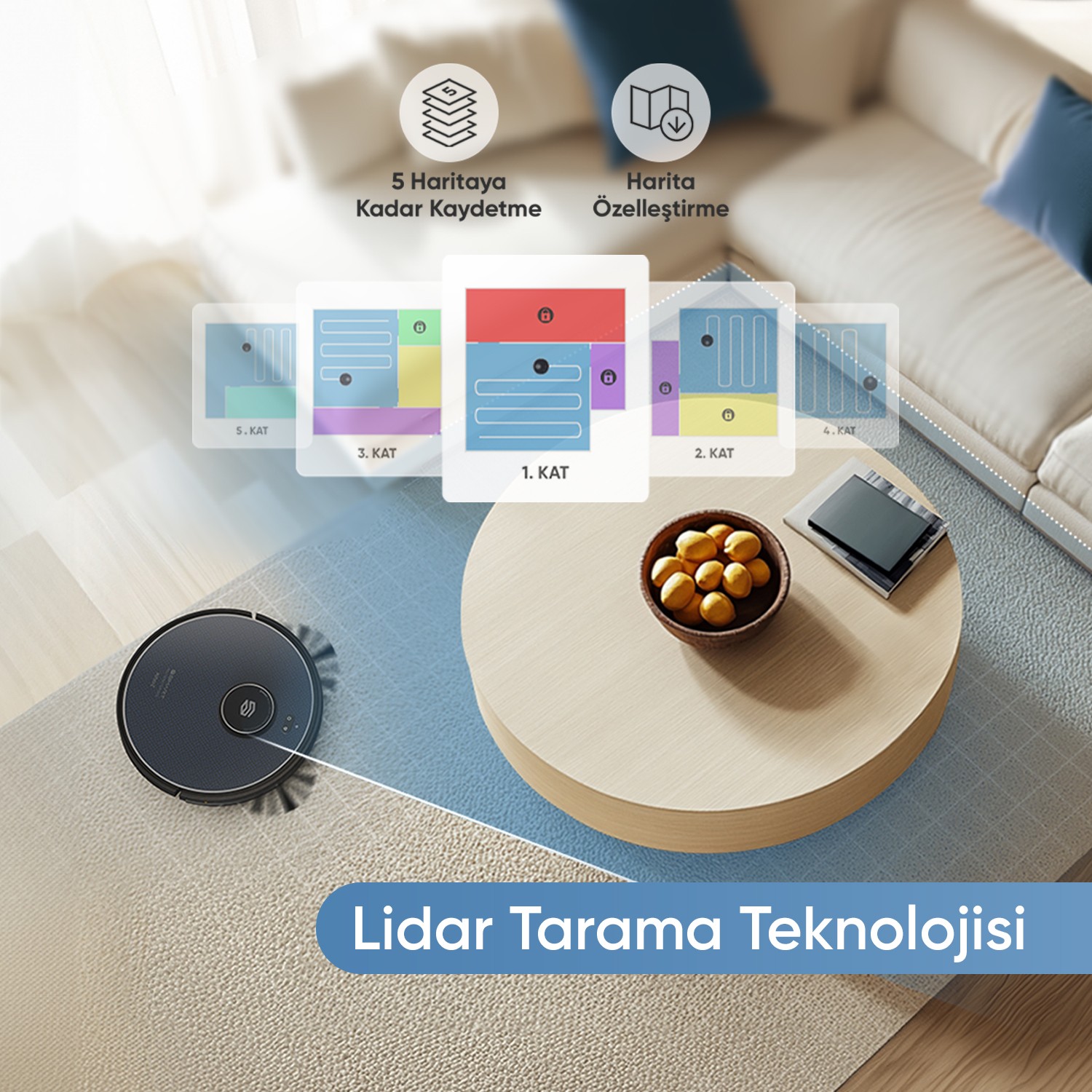 Çok güzel süpürüyor. Halının üzerinde güçlendiriyor önden haritaya gerek kalmıyor. Sığabildiği her yere giriyor. Arada çok hızlı dönüp duvara çarpıyor ama zamanla yasak bölge oluşturup onu da düzeltebilirsiniz. Çok beğendim.