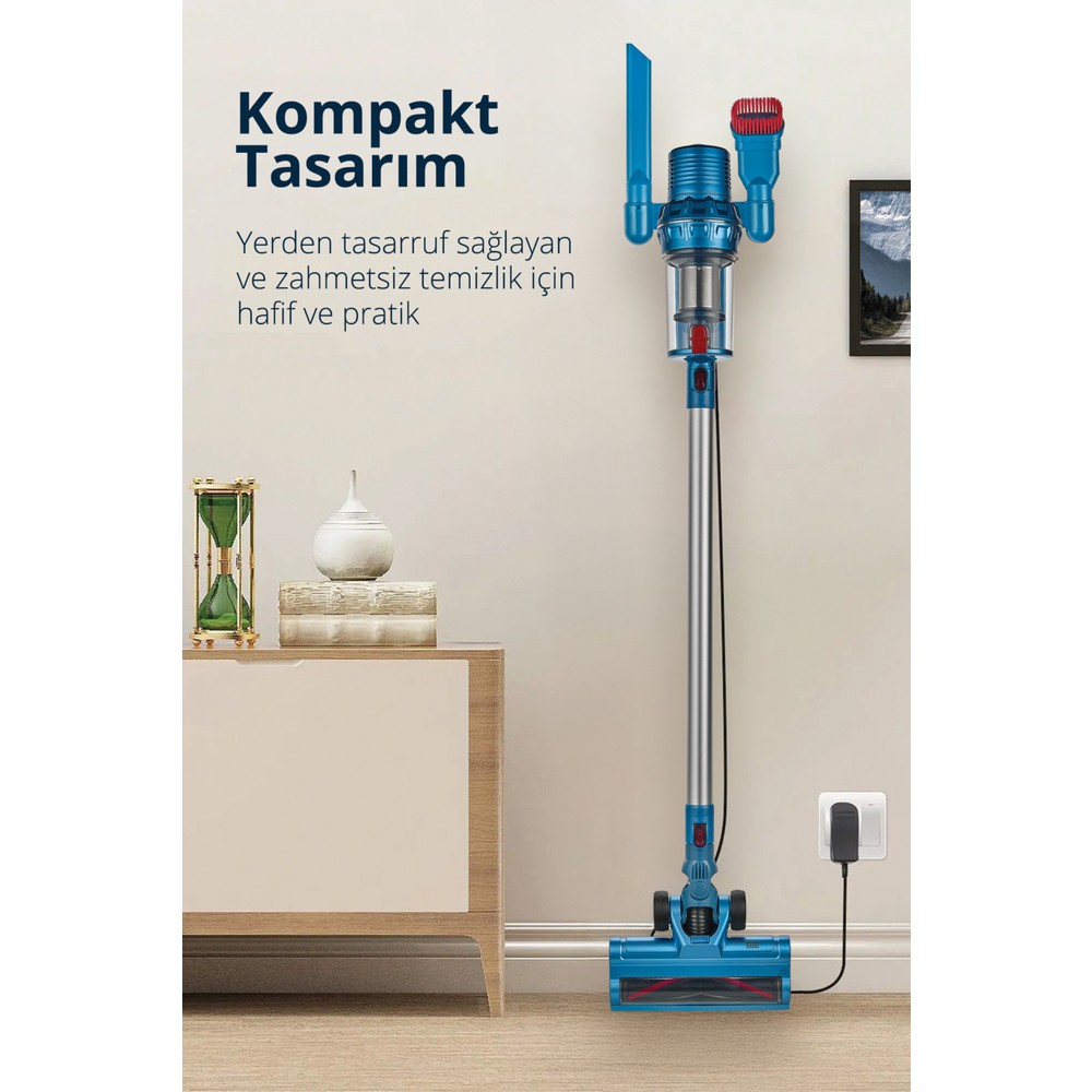 KVC-4041 Kablosuz Dik Süpürge, güçlü bir motoru ve hafif tasarımı ile evinizdeki her türlü zemini kolayca temizlemenize yardımcı olur. 2200 mAh şarj edilebilir pil sayesinde kablosuz olarak kullanabilir ve herhangi bir priz aramadan temizlik yapabilirsiniz. 2 farklı emiş gücü seçeneği ile farklı yüzeylerde etkili temizlik sağlar. Ayrıca, 4 farklı başlık ile köşeler, halılar ve mobilyalar gibi zorlu alanlara kolayca erişebilirsiniz. KVC-4041 Kablosuz Dik Süpürge, pratik kullanımı ve yüksek performansıyla ev temizliğinizi daha kolay ve hızlı hale getirir.