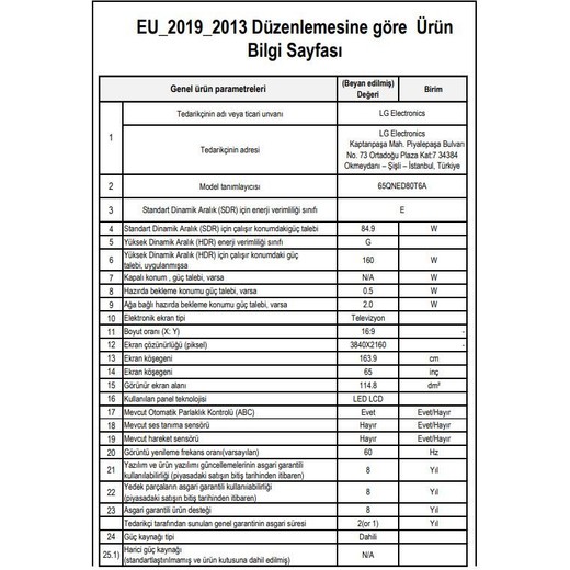 Garanti: LG Türkiye tarafından 2 yıl resmi garantilidir.