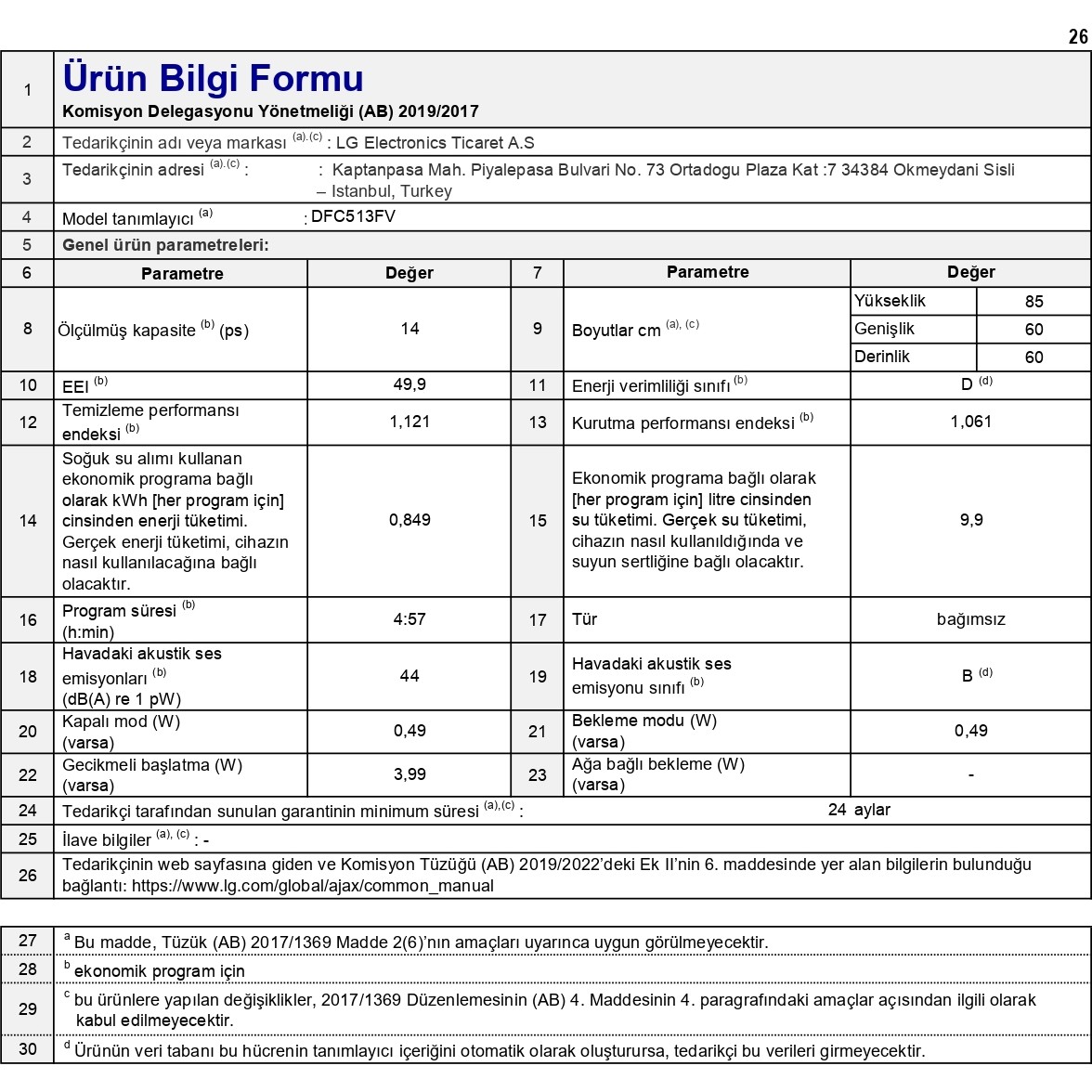Lg DFC513FV D Enerji Sınıfı 9 Program Bulaşık Makinesi