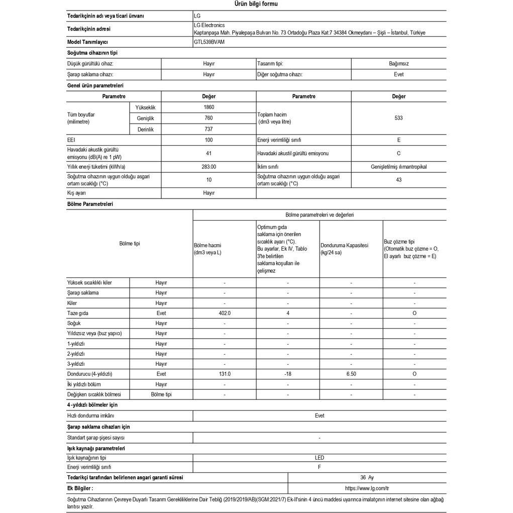 LG GTL539BVAM Dondurucu Altta Buzdolabı – Detaylı Ürün Açıklaması
