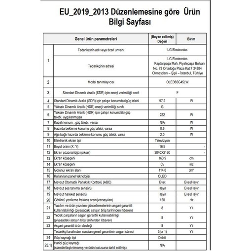 Garanti: LG Türkiye tarafından 2 yıl resmi garantilidir.