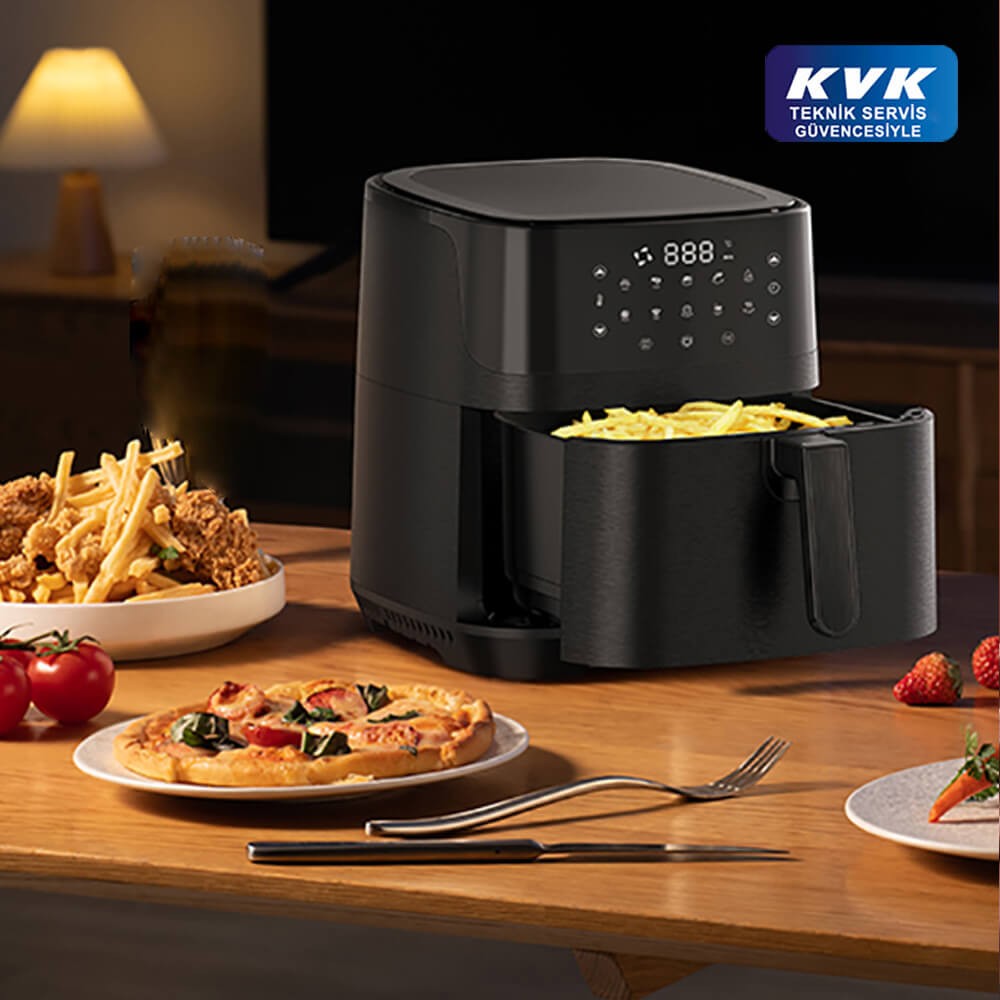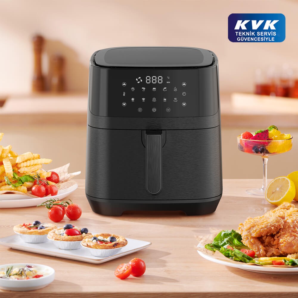 Air Fryer teknolojisi sayesinde yiyecekleri sağlıklı bir şekilde kızartabilir ve yağ kullanımını minimum seviyeye indirebilirsiniz. Ayrıca, dijital kontrol paneli sayesinde pişirme süresini ve sıcaklığını kolayca ayarlayabilirsiniz.