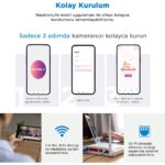 Bu kamera, bir mobil uygulama aracılığıyla kontrol edilebilir, böylece herhangi bir yerden kamerayı izleyebilir ve kontrol edebilirsiniz. Bu sayede evinizin veya işyerinizin güvenliğini her zaman kontrol altında tutabilirsiniz.