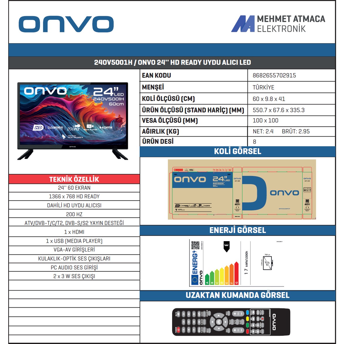 Onvo 24OV5001H 24” 60 Ekran Uydu Alıcılı HD Ready LED TV