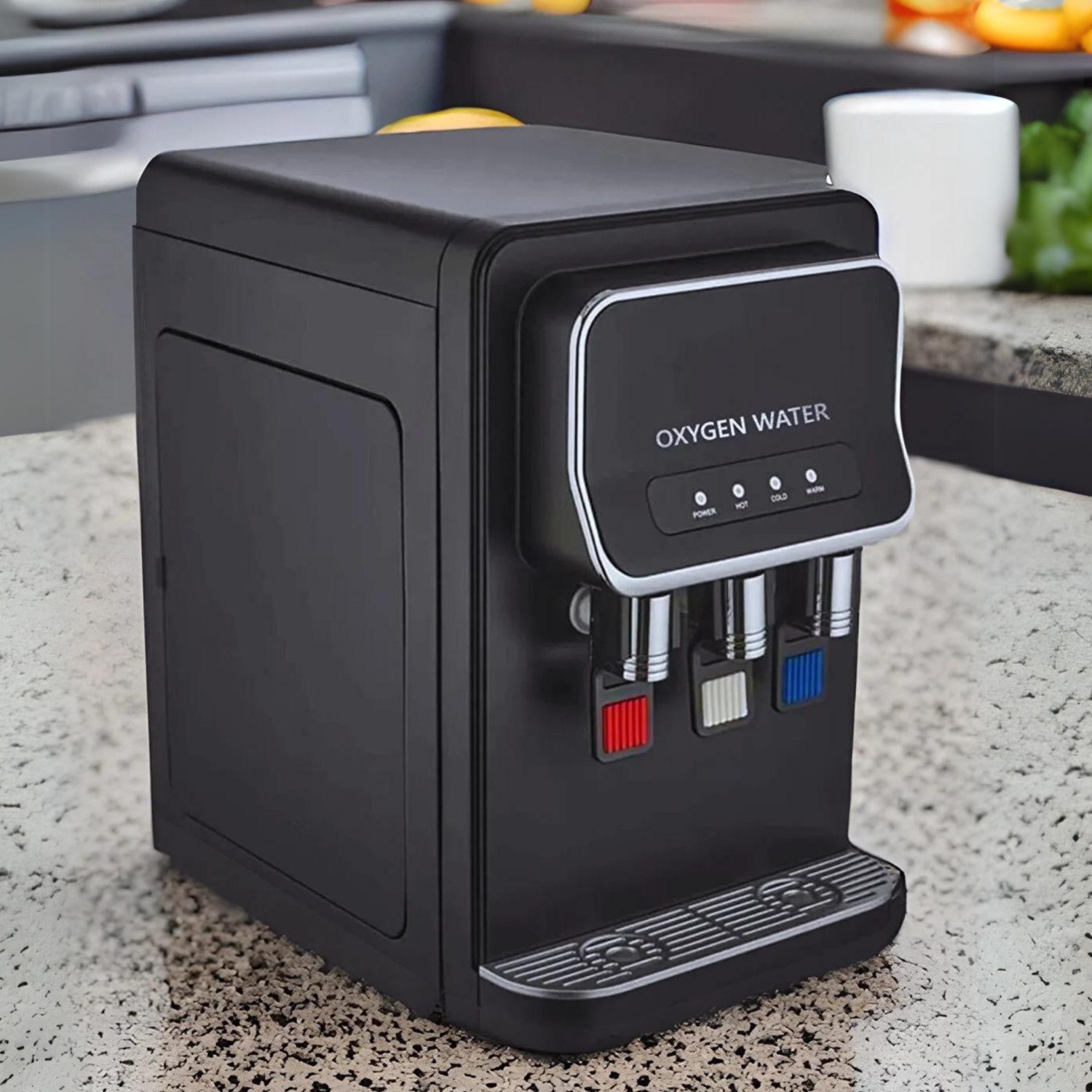 Oxygen Water Tezgah Üstü Arıtmalı Su Sebili – Sıcak Soğuk ve Normal Su Çıkışlı Siyah Tezgah Üstü Arıtmalı Sebil