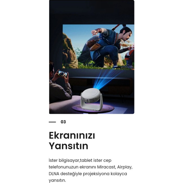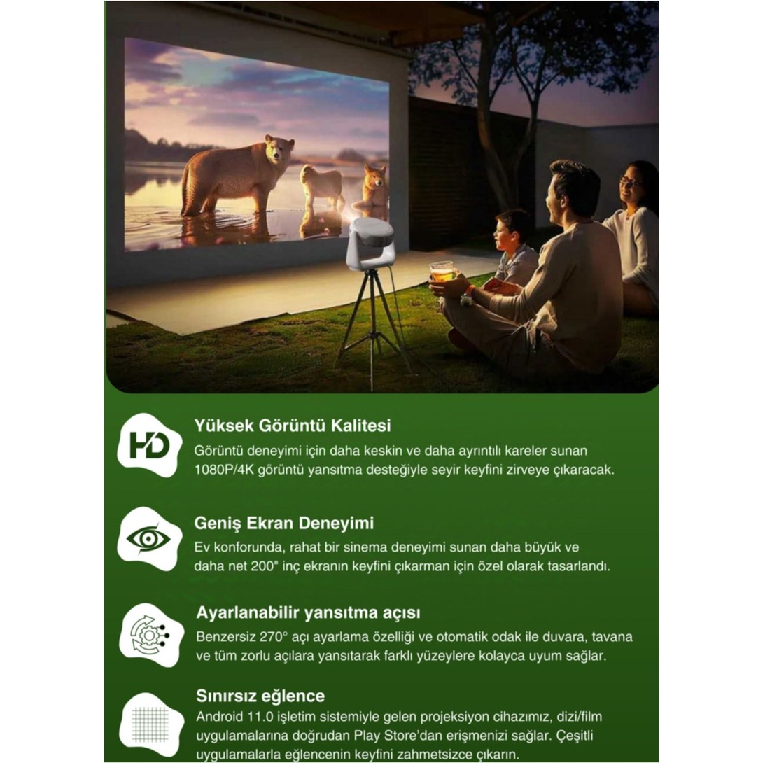 P1 Taşınabilir Sinema Projeksiyon Cihazı, 4K destekli 1080P çözünürlük sunan bir Android sistemine sahip bir cihazdır. Bu projeksiyon cihazı, yüksek kaliteli görüntüler sunmak için gelişmiş teknoloji kullanır ve taşınabilir bir powerbank ile birlikte gelir. Bu sayede istediğiniz her yerde sinema keyfini yaşayabilirsiniz.