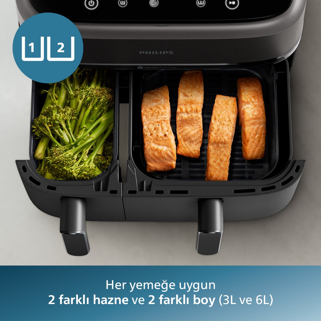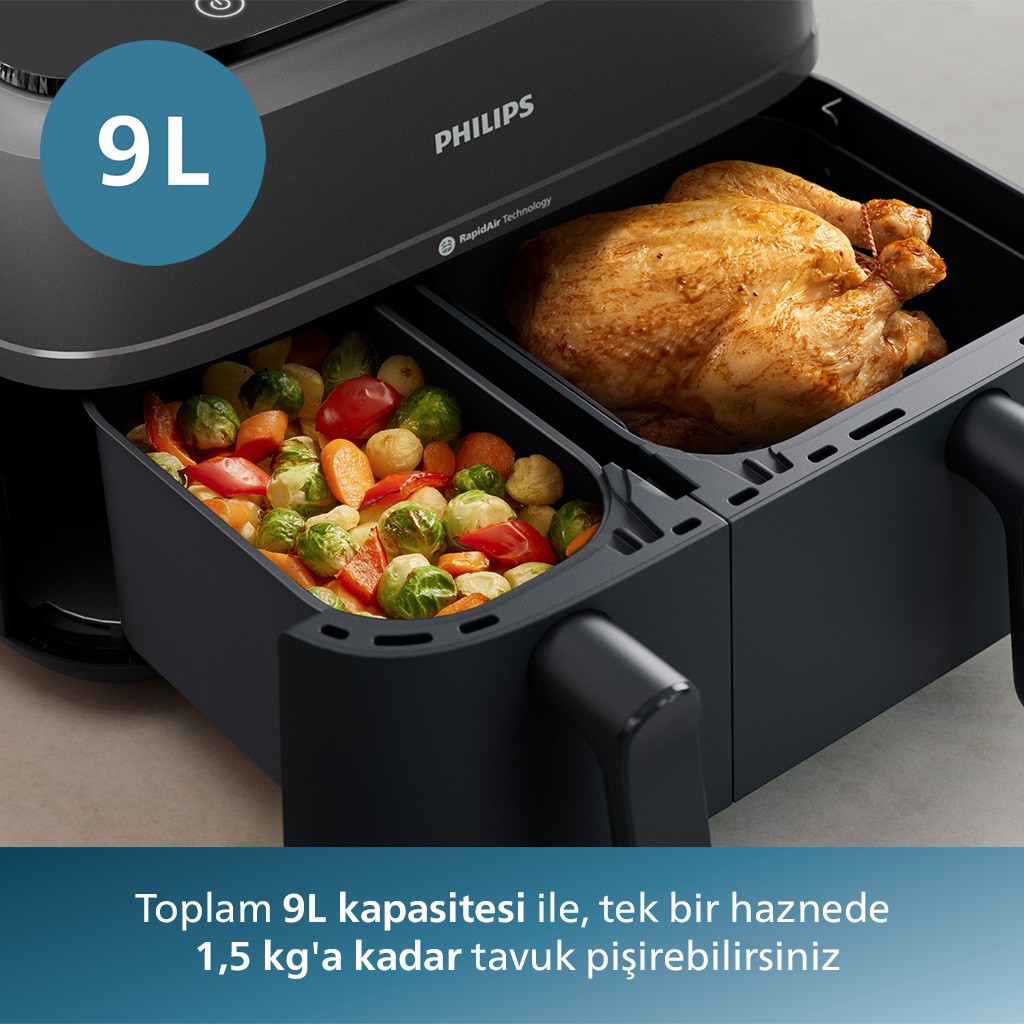 Philips 3000 Serisi Airfryer Çift Hazneli, Rapid Air Plus Teknolojisi, 8 Ayarlı Dijital Ekran, HomeID Uygulaması, NA350/00