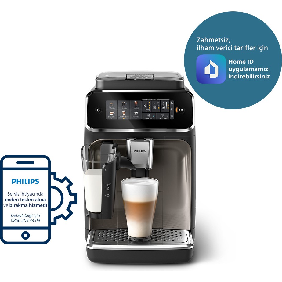 Philips 3300 Serisi LatteGo Tam Otomatik Espresso Makinesi, AquaClean Filtre, 6 İçecek, SilentBrew, Siyah Krom, EP3347/90