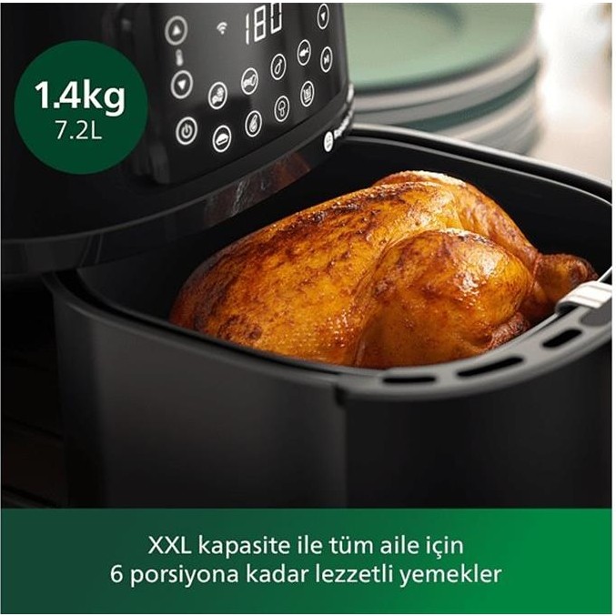 Philips 5000 Serisi Airfryer XXL Connected, 7,2 l (1,4 kg), Rapid Air Teknolojisi, Pişirme ve Izgara Aksesuarları, HD9285/96