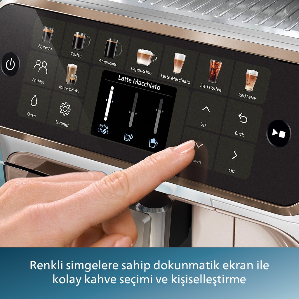 Philips 5500 Serisi LatteGo Tam Otomatik Espresso Makinesi 20 Sıcak ve Soğuk İçecek, Renkli Dokunmatik Ekran, EP5543/80 için 4 değerlendirme
