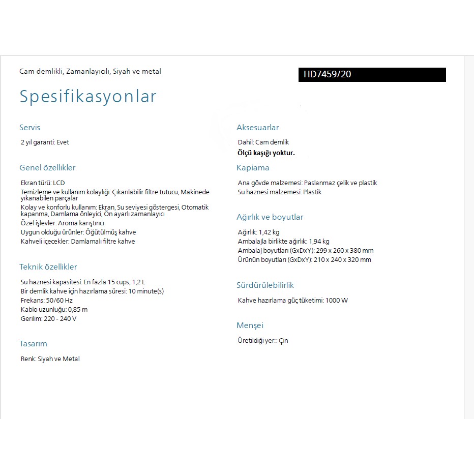Philips HD7459/20 Daily Collection Kahve Makinesi, günlük kahve ihtiyacınızı karşılamak için tasarlanmış kullanımı kolay bir kahve makinesidir. 1.2 litrelik su tankı sayesinde bir seferde 10-15 fincan kahve demleyebilirsiniz. Ayrıca anti-damlatma özelliği sayesinde demleme işlemi sırasında damlama sorunu yaşamazsınız.