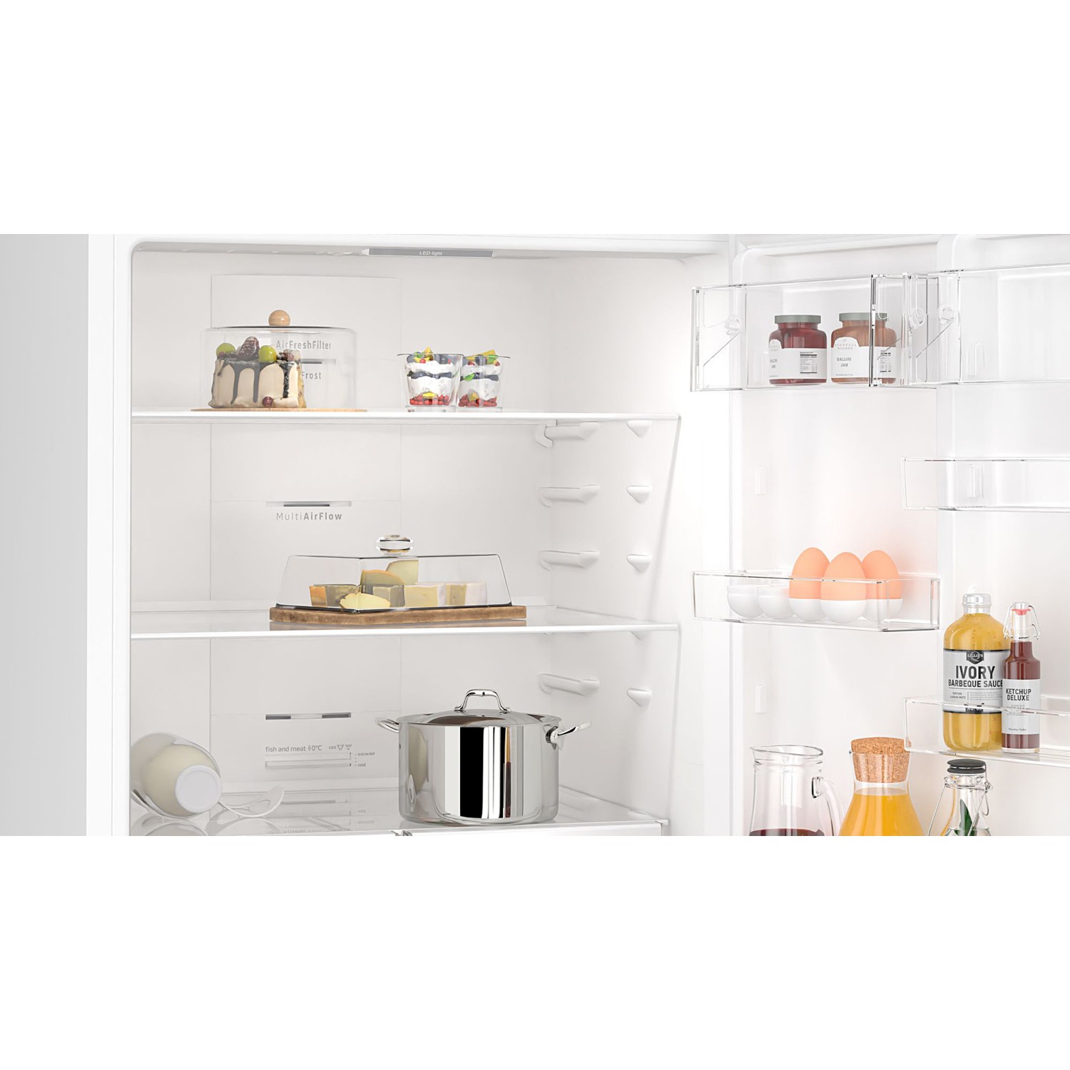 Derin dondurucu sıcaklık göstergesi, Dondurucu uyarı fonksiyonu, Ekonomi modu / Tatil modu, Kapı açık kaldığında uyarı sinyali, Soğutucu sıcaklık göstergesi, Süper dondurma fonksiyonu, Süper soğutma fonksiyonu