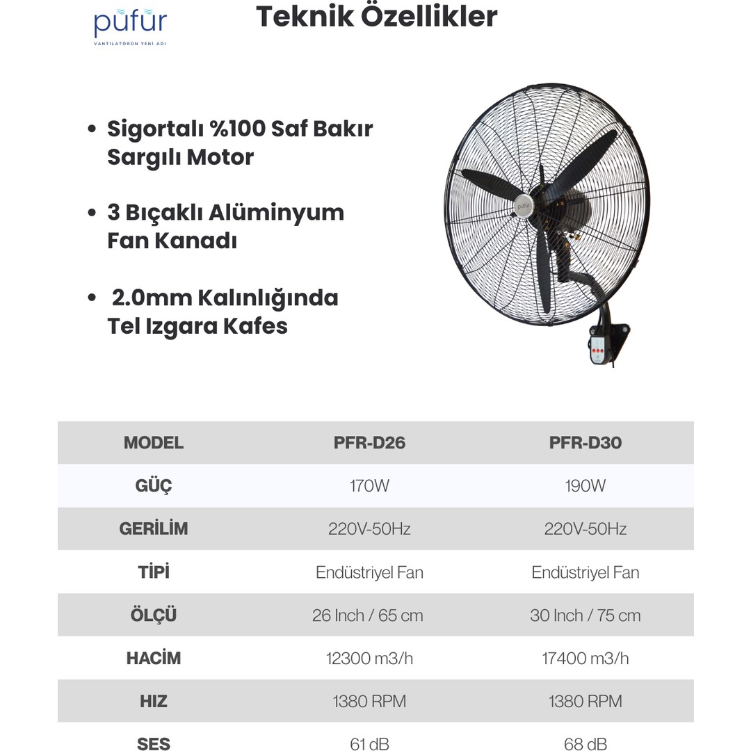 Püfür Kumandalı, Zaman Ayarlı Sanayi Duvar Tipi Endüstriyel Vantilatör 65 Cm – 2 ADET