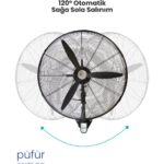 Bu endüstriyel vantilatör, 65 cm çapında olup zaman ayarlı ve püfür kumandalıdır. Duvar tipi olarak tasarlanmıştır ve sanayi tipi kullanıma uygundur. Paket içerisinde 2 adet vantilatör bulunmaktadır.
