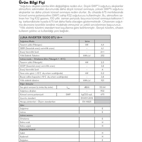 Regal Luna A++ 15000 BTU Inverte Duvar Tipi Klima
