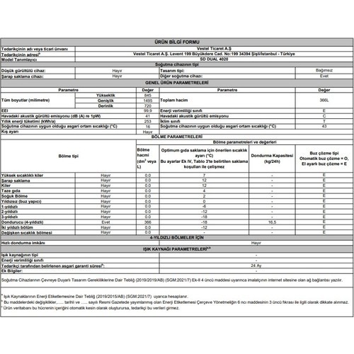 Regal Sd Dual 4020 E Enerji Sınıfı 366 lt Sandık Tipi Derin Dondurucu