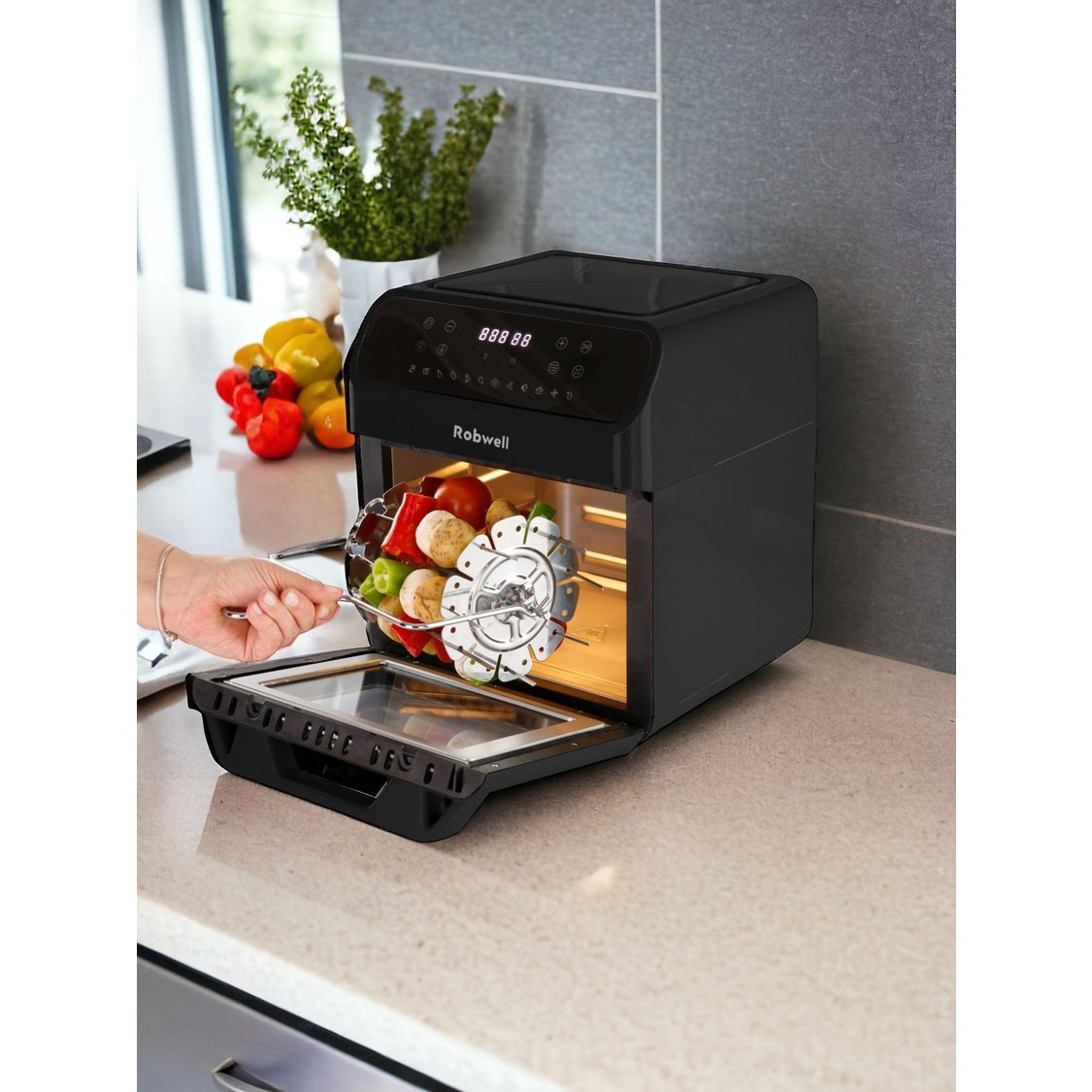 Robx Robwell As29 12 Litre Tavuk Çevirme Şiş Kebap Dönen Patates Sepetli Airfryer