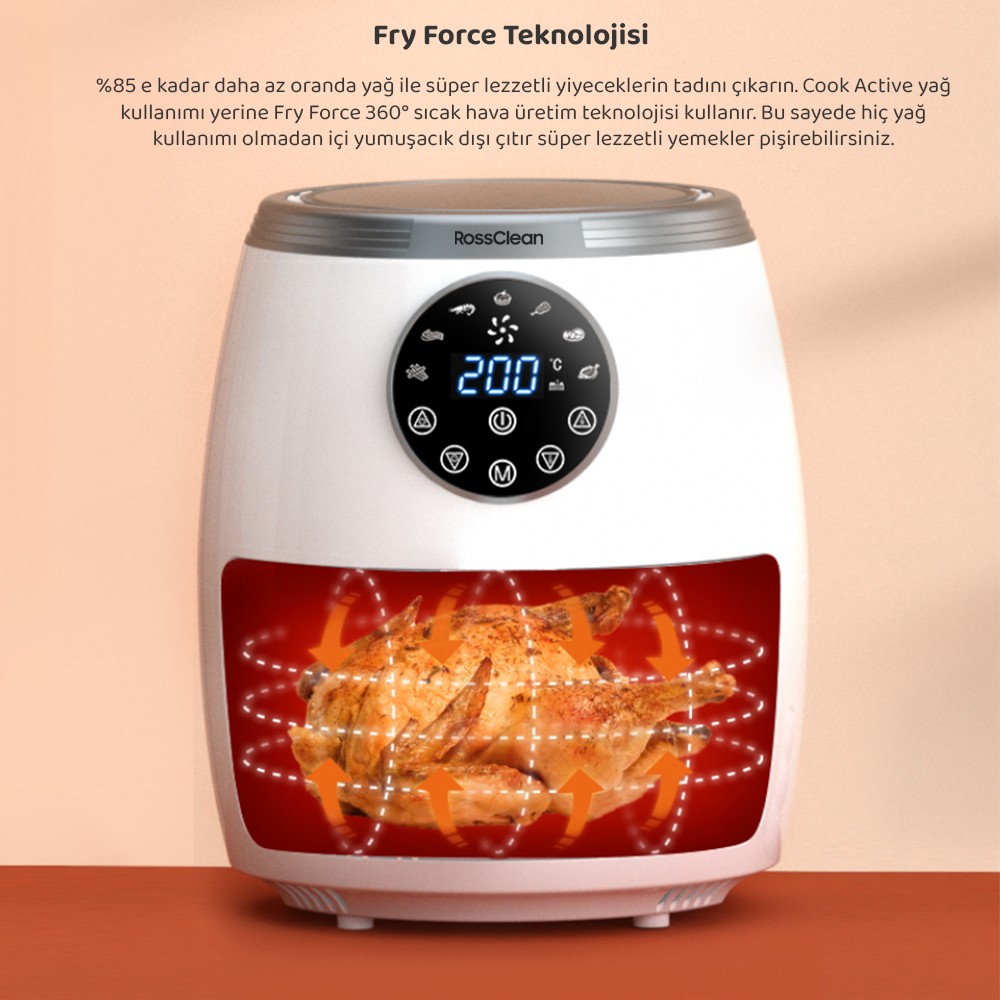 RossClean Cook Active 5,5l Dijital Airfryer Fritöz