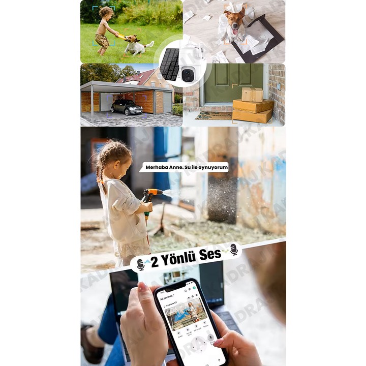 RXR Wıfı | Solar Panelli Kablosuz Ptz Kamera | 2k | 360° Hareket | Gece Görüşü | Çift Yönlü Konuşma | Akıllı Alarm | IP66 Dış Mekan | 128GB Sd