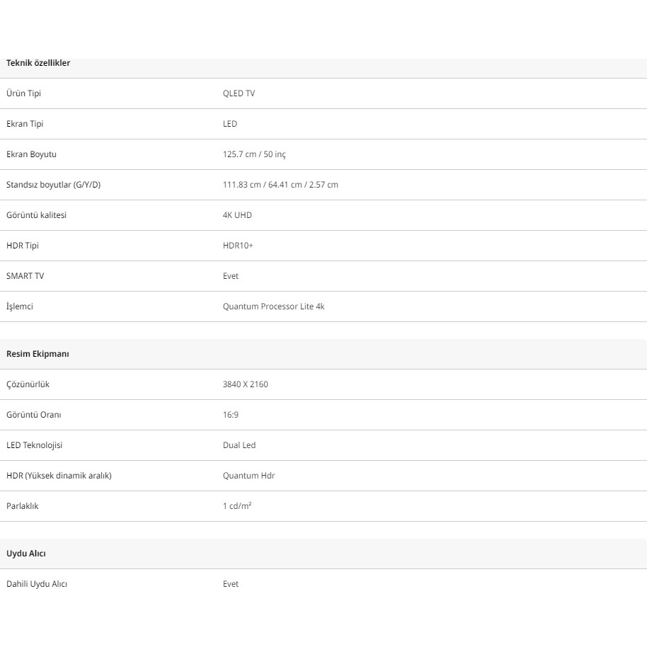 Sonuç olarak, Samsung 50Q60D 50″ 126 Ekran Uydu Alıcılı 4K Ultra HD Smart QLED TV, yüksek kaliteli görüntü ve akıllı özellikleriyle ev eğlencesini bir üst seviyeye taşır.
