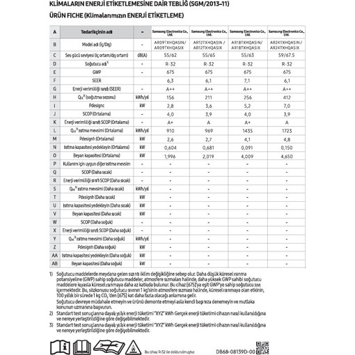 Bu klima modeli Samsung’un AR12TXHQBWK/SK serisine aittir ve 12000 BTU kapasitesine sahiptir. Duvar tipi tasarımıyla kullanıcıların kolaylıkla montaj yapabileceği bir üründür. A enerji sınıfına sahip olan bu klima, enerji tasarrufu sağlayarak kullanıcıların elektrik faturalarını düşürmelerine yardımcı olur. Ayrıca, akıllı Wi-Fi özelliği sayesinde uzaktan kumanda edilebilir ve programlanabilir. Samsung’un gelişmiş teknolojisi sayesinde hava filtresi ile havayı temizler ve sağlıklı bir ortam oluşturur. Bu klima modeli, kullanıcıların konforunu ve memnuniyetini ön planda tutarak yüksek performans sunar.