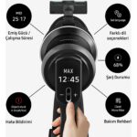 Samsung VS25C9779QK/TR Bespoke Jet Aı Elite Extra Dikey Şarjlı Süpürge, yüksek performanslı bir elektrikli süpürge modelidir. Dikey tasarımı sayesinde kolayca manevra yapabilir ve dar alanlara erişebilirsiniz. Jet Aı teknolojisi sayesinde güçlü bir emiş gücüne sahiptir ve zorlu kirleri bile kolayca temizler. Ekstra şarjlı özelliği ile kablosuz kullanım imkanı sunar ve uzun süreli temizlik işlemlerinde pratiklik sağlar. Ayrıca, farklı zemin tipleri için özel olarak tasarlanmış farklı başlıklar ve aparatlar ile kullanıcıya geniş bir temizlik yelpazesi sunar. Samsung VS25C9779QK/TR Bespoke Jet Aı Elite Extra Dikey Şarjlı Süpürge, modern tasarımı ve yüksek performansıyla evinizdeki temizlik işlerini kolaylaştırmak için ideal bir seçenektir.