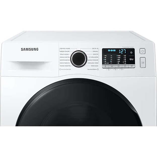 Samsung WD80TA046BE1AH, 8 kg yıkama kapasitesi ve 5 kg kurutma kapasitesi ile geniş bir yıkama ve kurutma alanı sunar. 1400 devir hızı sayesinde çamaşırlarınızı hızlı ve etkili bir şekilde temizler ve kurutur. A+++ enerji verimliliği sınıfına sahip olan bu çamaşır makinesi, enerji tasarrufu sağlar. Çeşitli program seçenekleri ile farklı kumaş türlerine uygun yıkama ve kurutma işlemleri yapabilirsiniz. Ayrıca, akıllı sensörler sayesinde su ve deterjan tüketimini optimize ederek daha ekonomik bir kullanım imkanı sunar. Şık tasarımı ve kullanıcı dostu kontrol paneli ile de dikkat çeken Samsung WD80TA046BE1AH, evinizdeki çamaşır işlerini kolaylaştırmak için ideal bir seçenektir.