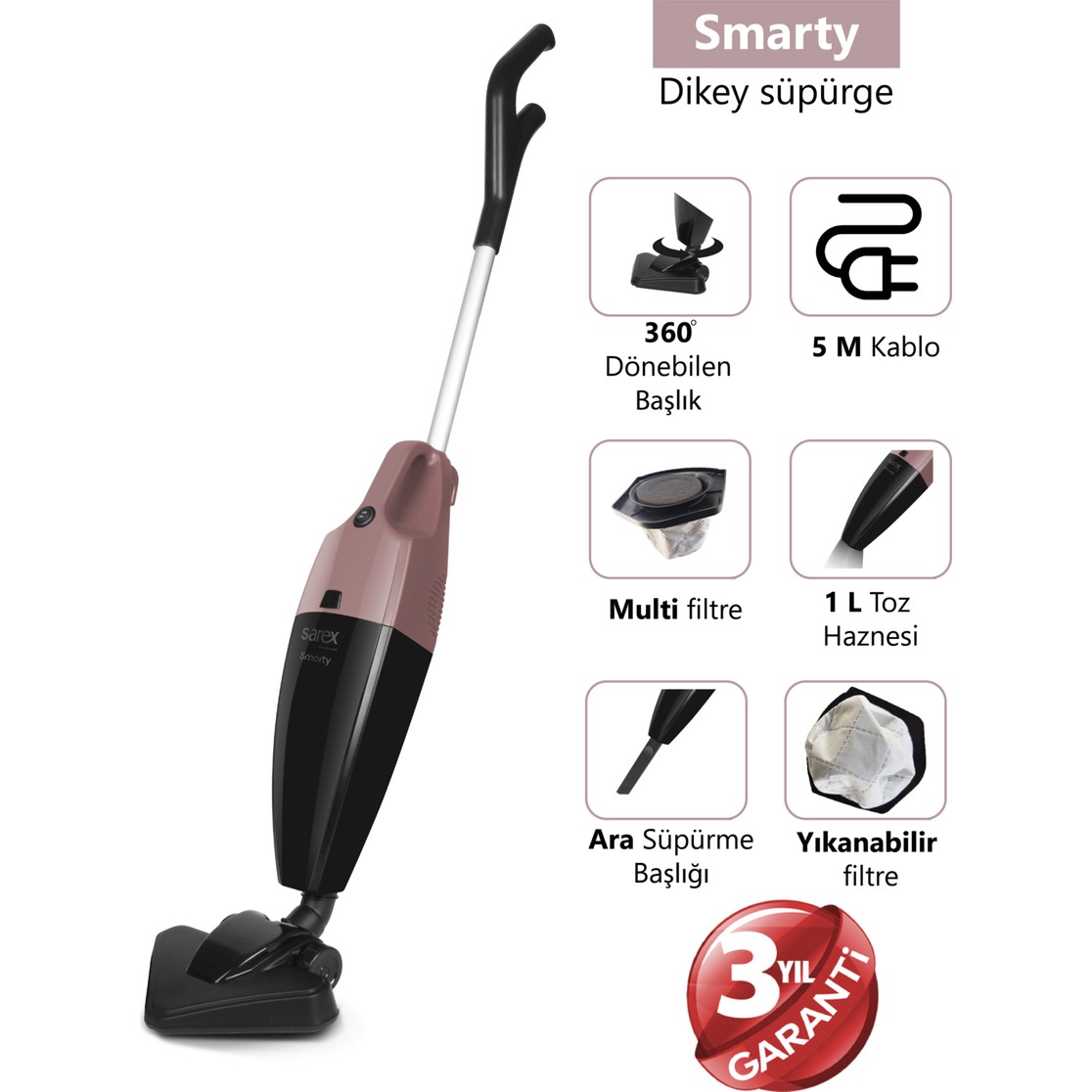 Sarex – SR-5010 Smarty Dikey Elektrikli Süpürge – Rose için 3 değerlendirme