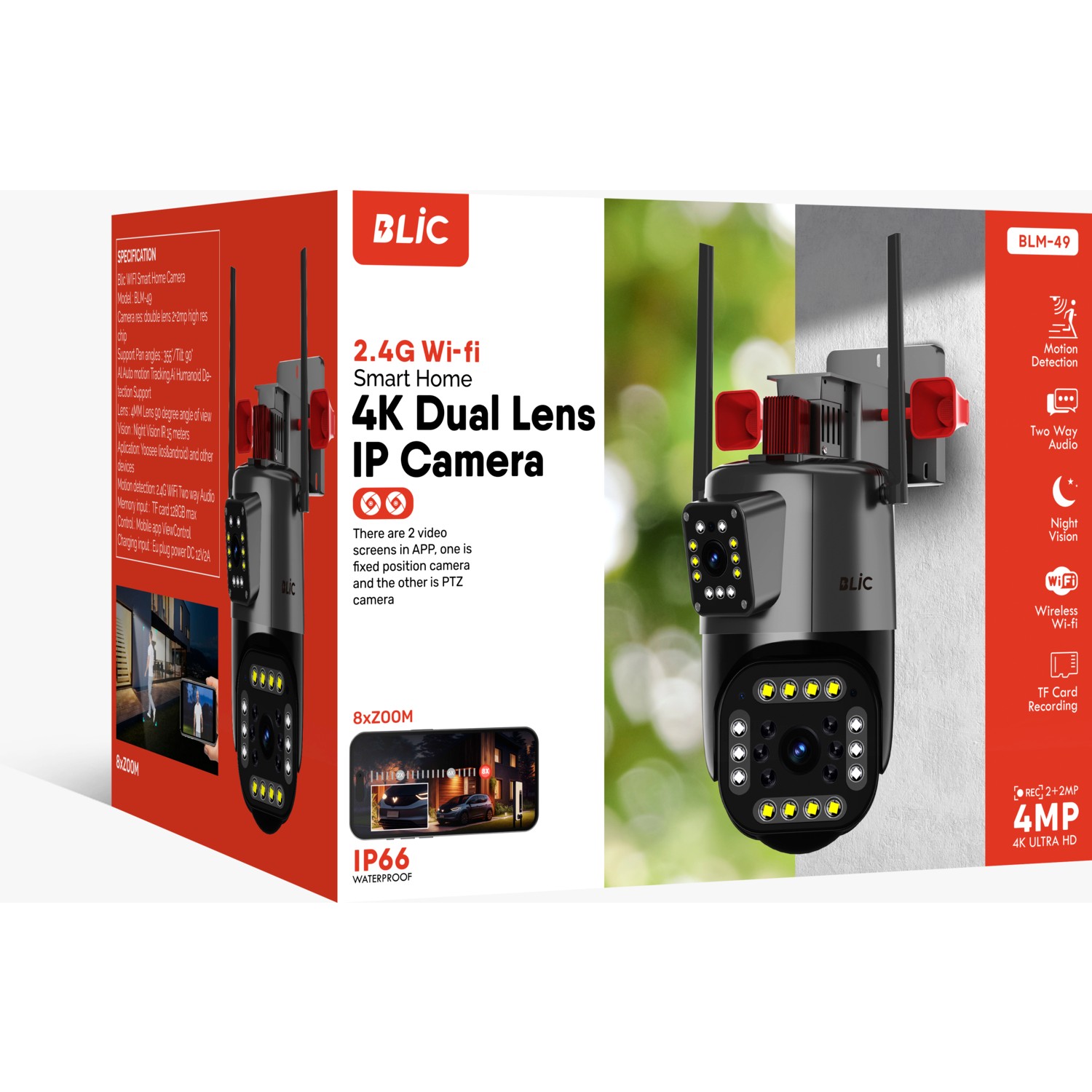 Sarftech BLM-49 2+2mp 4K Ultra Hd 8x Zoom Ip Kamera Wifi Özellikli Hareket Takipli Gece Sensörlü Kamera BLM-49