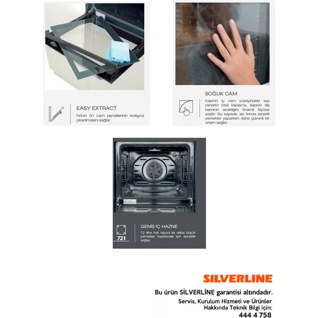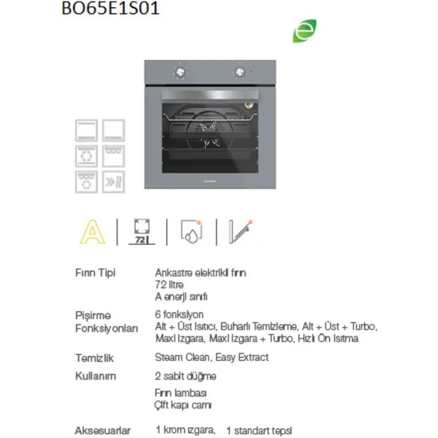 Brüt 72 litre iç hacme sahiptir. 1 adet tel ızgara, derin emaye tepsisi bulunur. Tek bir pişirme işleminde, tüm aparatlar içeriye sığmaktadır.