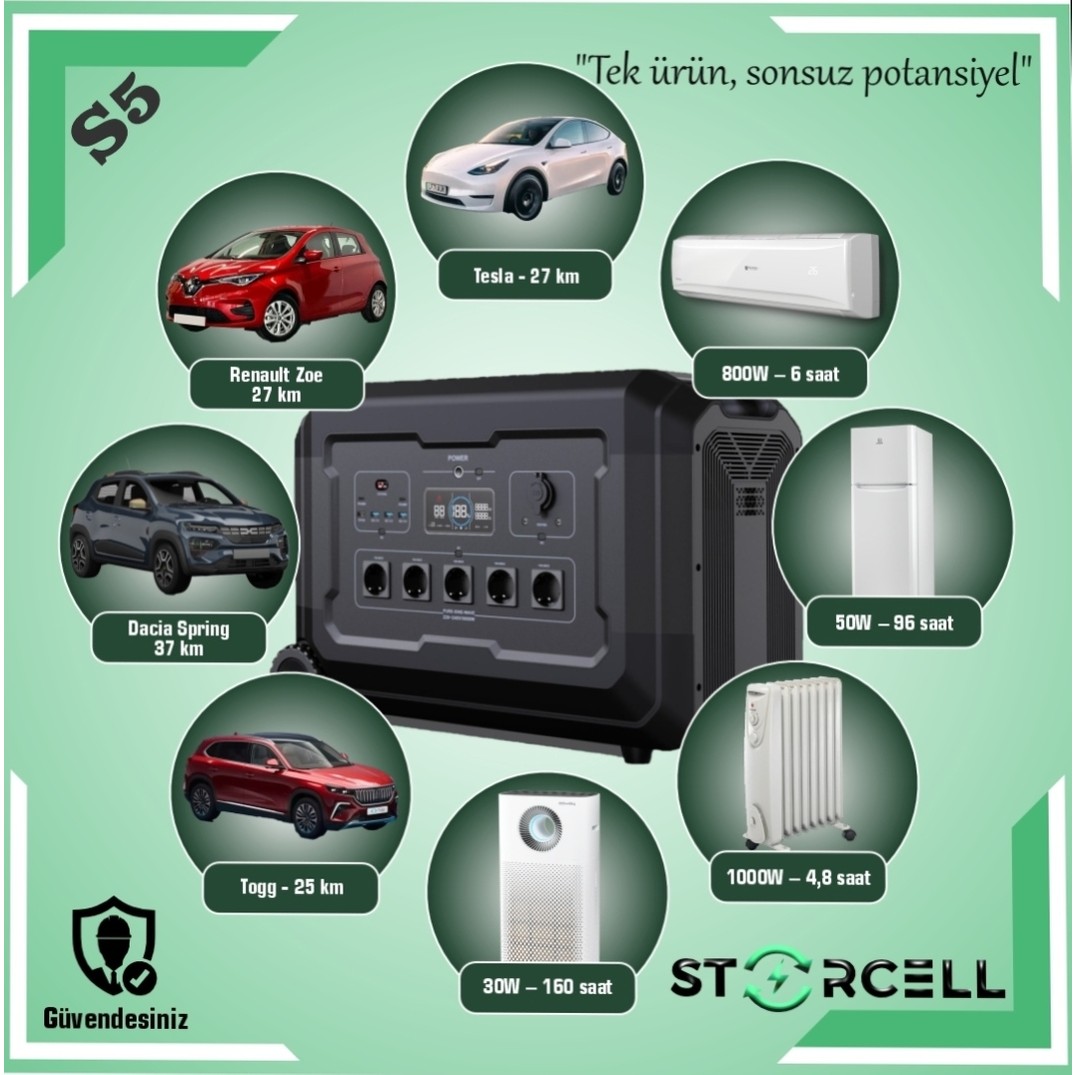 Storcell 5 KW=5000 W Sessiz Hibrit Jeneratör, Taşınabilir Güç KAYNAĞI,5040WH Lifepo4,elektrikli Araç,ev,kamp