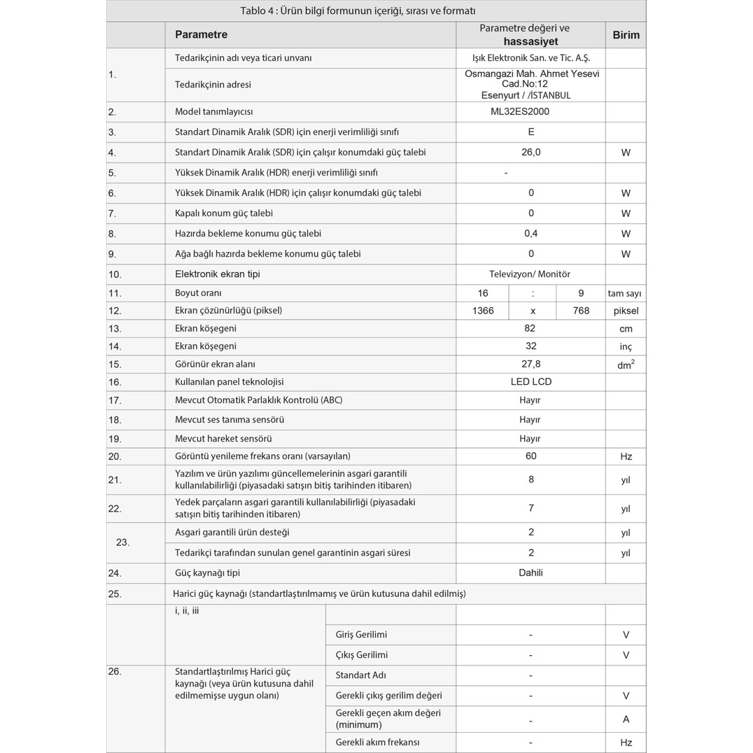 | Garanti Süresi (Ay) | |