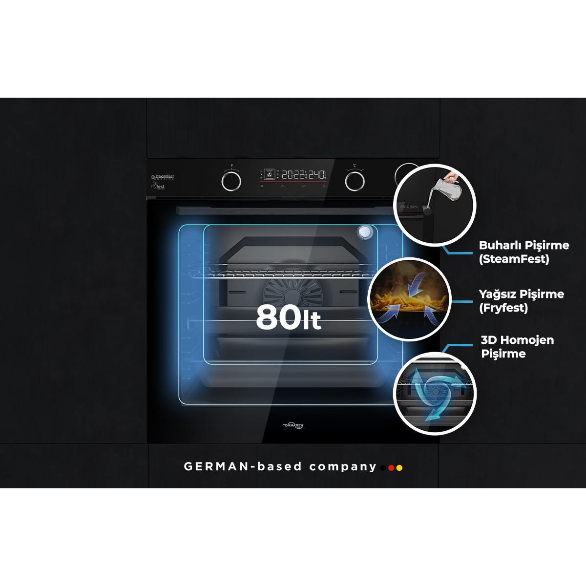 Türkiye’de fazla bilinmiyor çünkü yeni girmiş marka. Ancak Alman Malı olması yeterli zaten tercih için. Aynı özelliklere sahip diğer markalardan oldukça hesaplı. Bir kere çok şık. 9 programı var. Airfry özelliğini denedik. Dondurulmuş Patates yaptık ve Süper oldu. Fırın çok hızlı ısınıyor. Buhar haznesi var ve buharlı pişirebiliyorsunuz. İşiniz bitince otomatik soğutma yapıyor. Camlarına dokunabilirsiniz. Sıcağı iletmiyor. Teleskopik raylı sistemi var tepsi için. Zamanlayıcı var. Alarm var. İç aydınlatma var. Yani yok yok. Kesinlikle Tavsiye Ederim. Biz çok memnunuz.